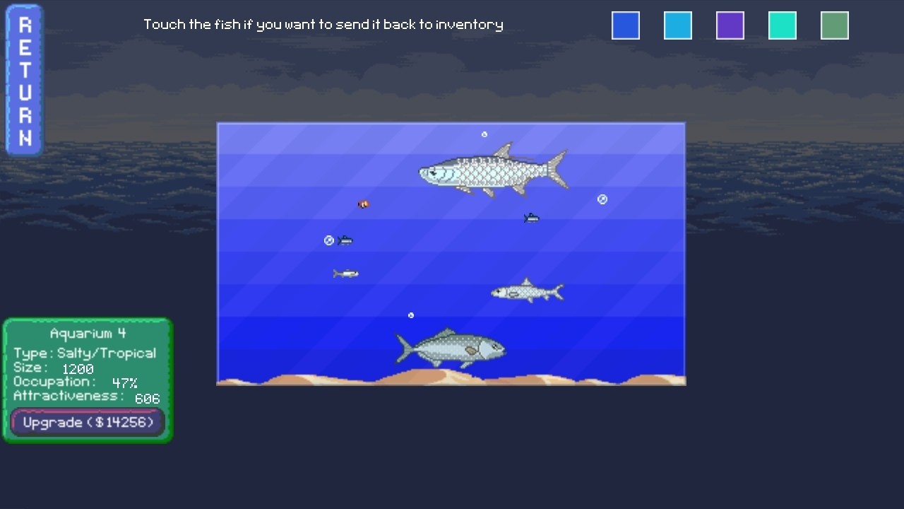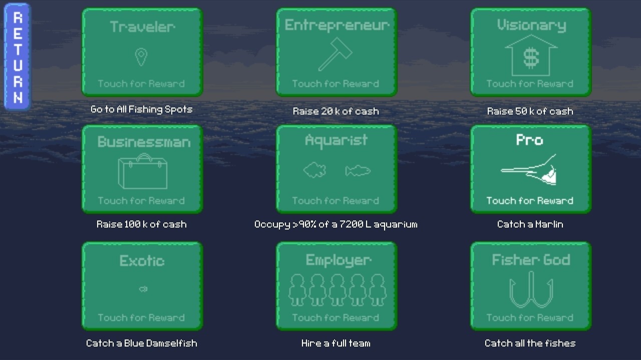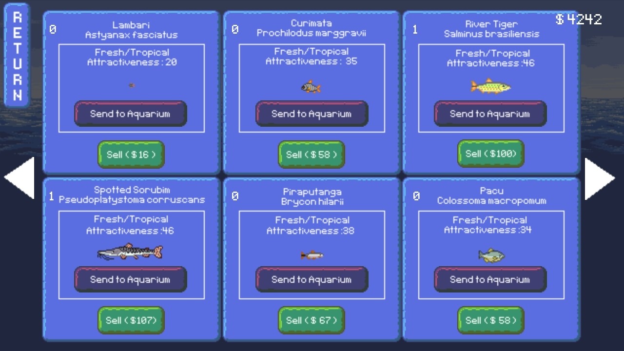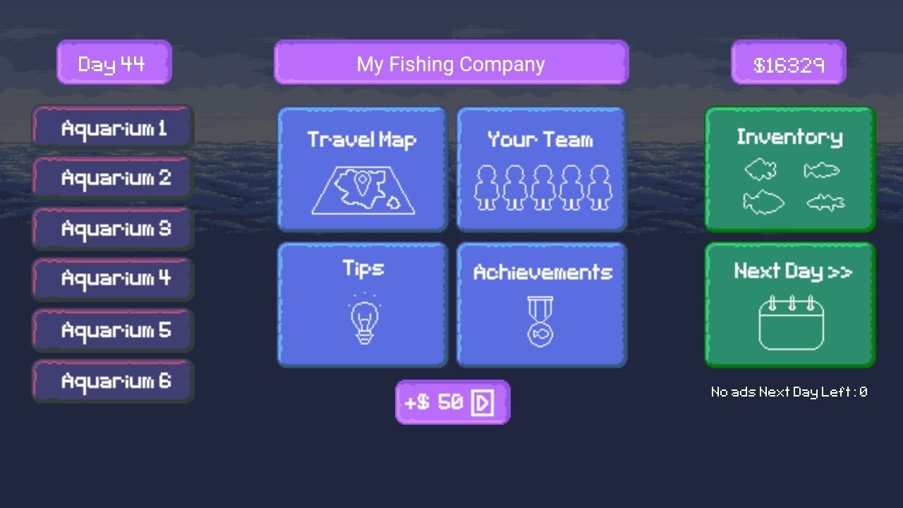 You can use your money to expand your aquariums, make new travels, hire new fishers and train them!