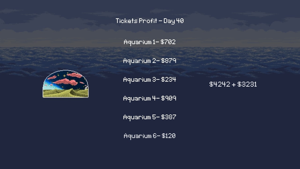 Some species are more profitable than others, so be sure to expose your best fishes! The more attractive your aquariums are, the more tickets profit you earn.