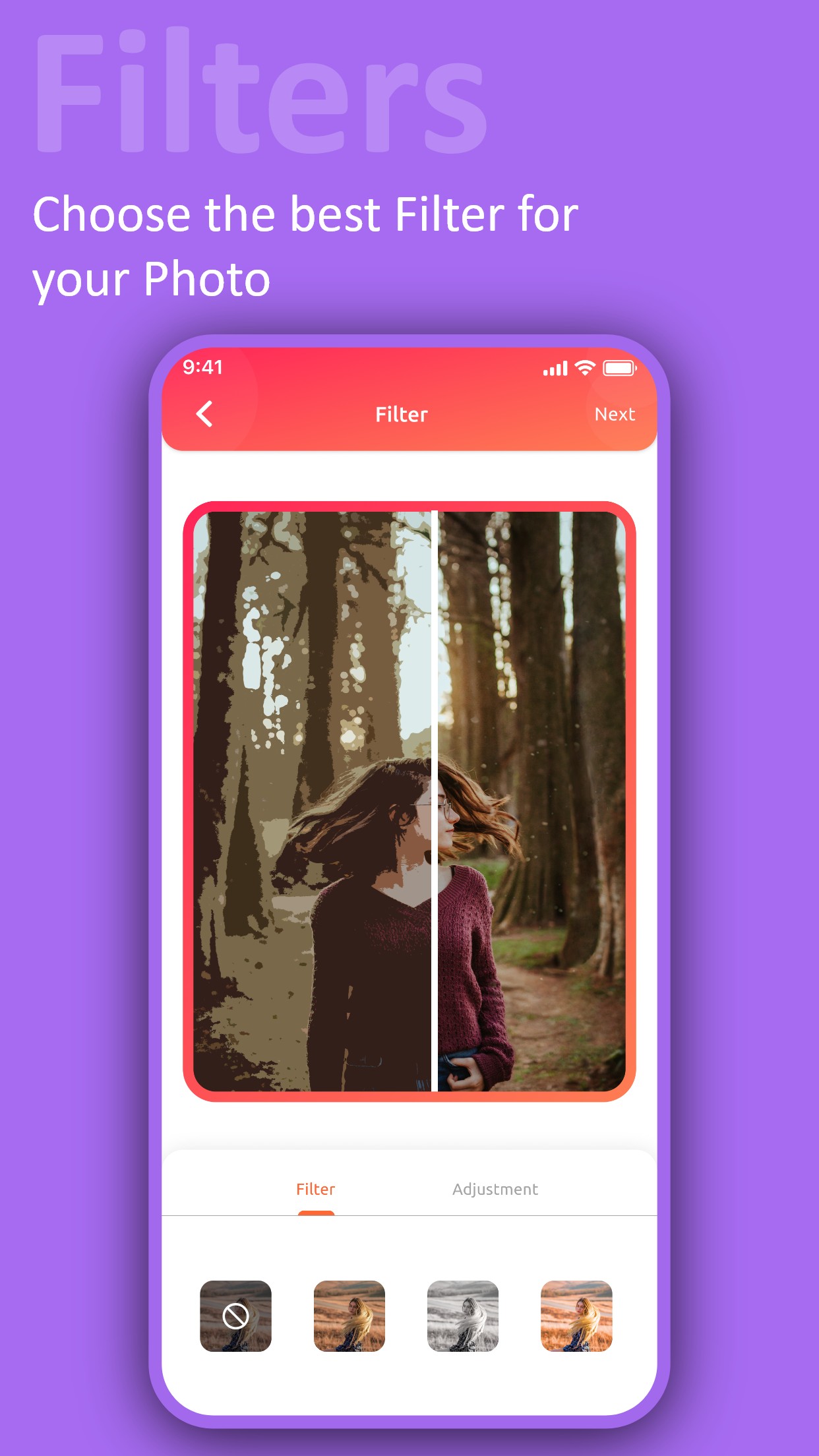 • Crop out pictures like a pro with handy crop and eraser tools and give a professional touch by choosing the best and most trending filters.