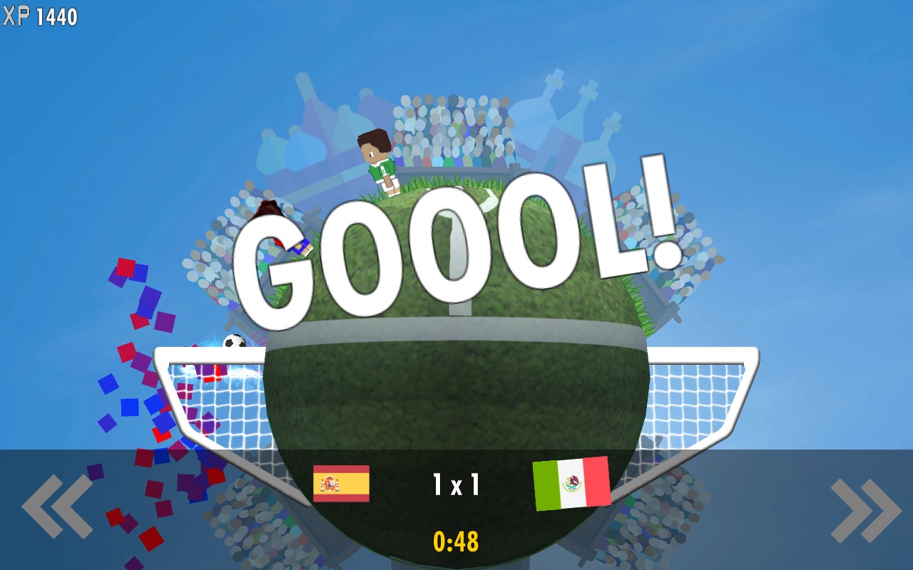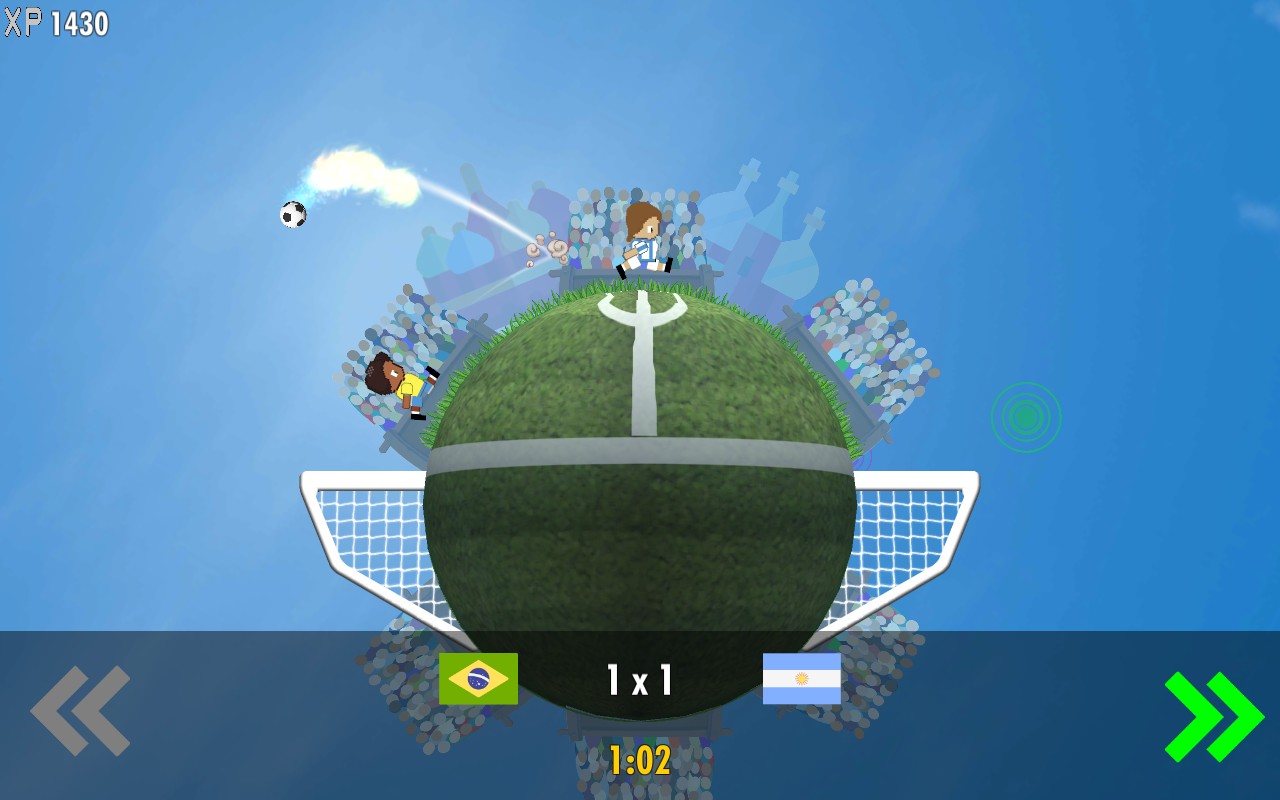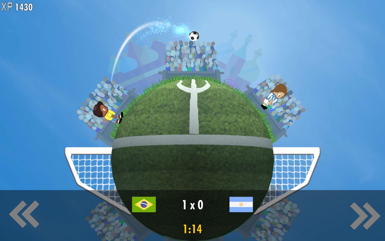 It has an easy gameplay, where you can play with one finger only, but using both hands you can have a better response time, and the agility needed to win the matches. Your controls are: move right and left. Kicks are automatic when the ball reaches your leg. So timing for moving, and a good strategy is the key to become the winner.