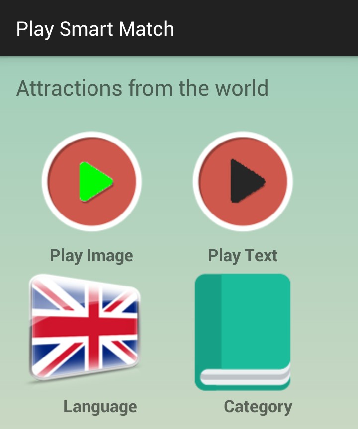 The categories that includes are: "Attractions from all the world", "Box Office stars", "Capital of country", "Constellations", "Country from flag", "Country from capital", "English football", "Famous people", "Olympic sports", "Proverbs" and "Riddles".