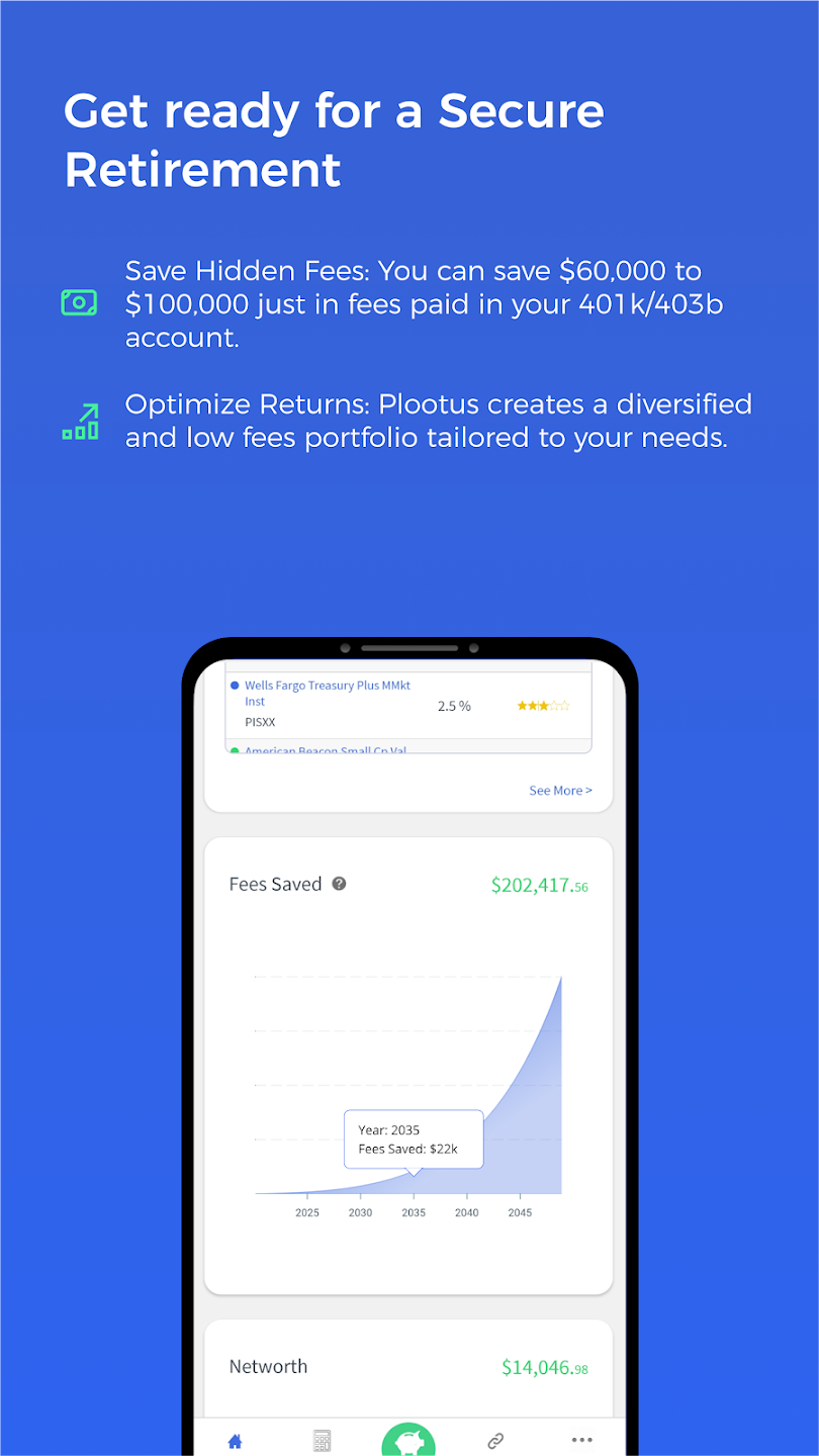 Plootus is a revolutionary personal finance app designed to help users take control of their financial future. Plootus offers a range of features, including budgeting, expense tracking, investment insights, and personalized financial advice, with a specialized focus on the niche area of retirement planning through 401k planning.