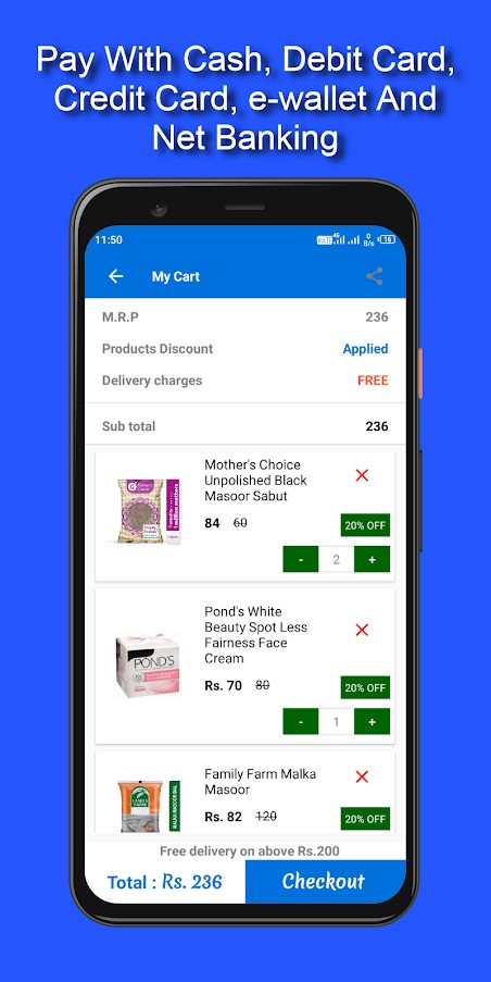 Fast and Secure Checkout: Pay by cash-on-delivery, net-banking, credit and debit cards options and e-wallets.