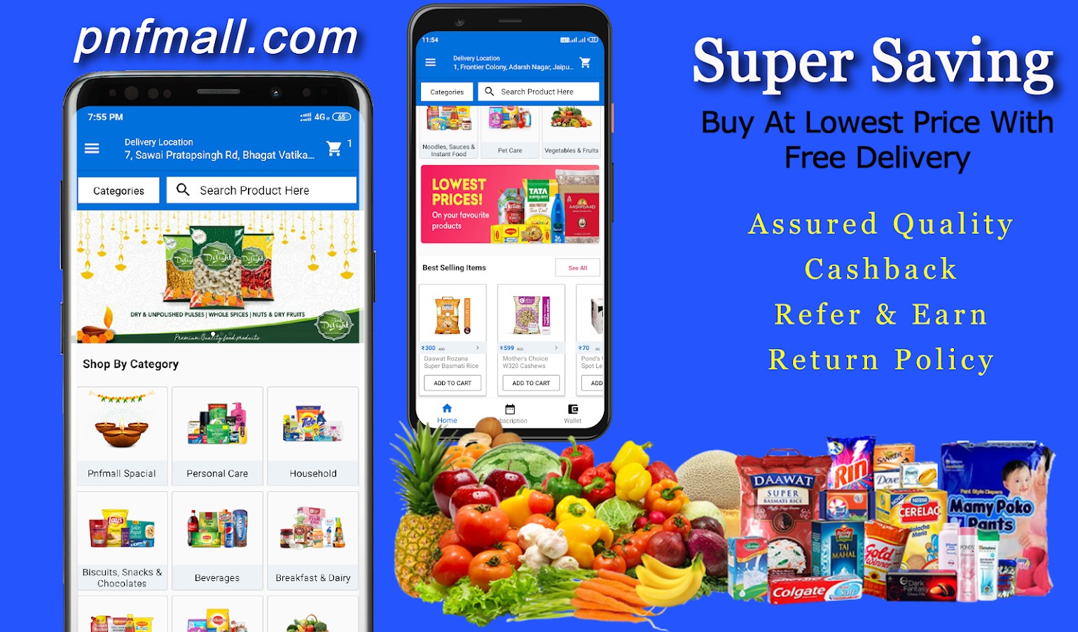 pnfmall.com is a online retail shop of Jaipur that aims to provide the best quality products of daily needs of every family such as fresh Fruits and Vegetables, Rice and Dals, Spices and Seasonings to Packaged products, Beverages, Personal care products. PNF Mall accept orders online and over phone also. Deliver the ordered product within few hours (maximum 24 hours). PNF Mall utilizes its efficient supply chain to deliver over 1 million products to customers every month. Our aim is to satisfy customer’s satisfaction as well as their needs. With over 12000 products and over a 800 brands in our catalogue you will find everything you are looking for.