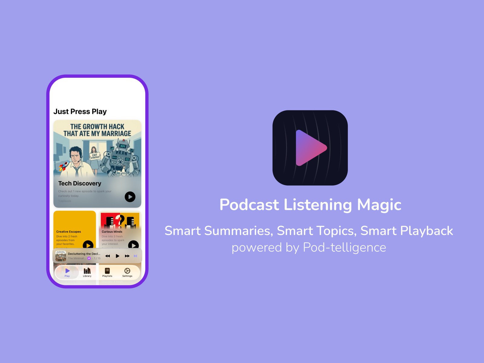 Your privacy matters. All Pod-telligence processing happens on your device. Your audio never gets uploaded to external servers, and your listening habits stay between you and your phone.