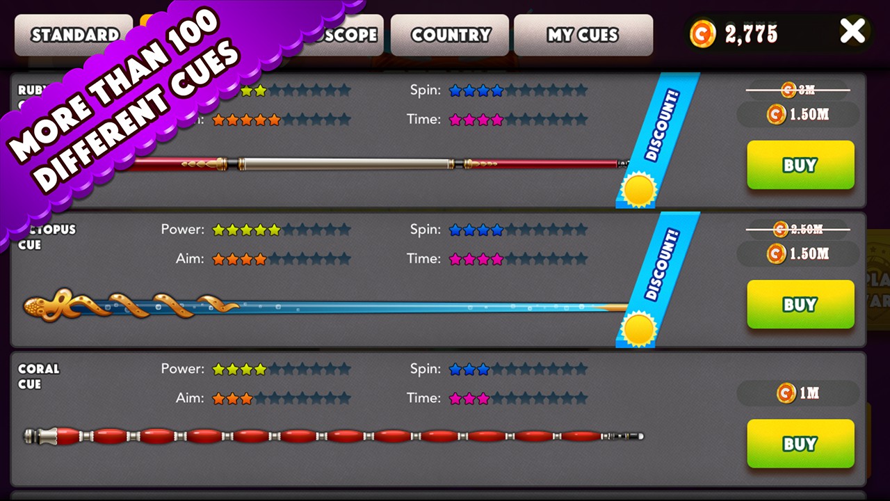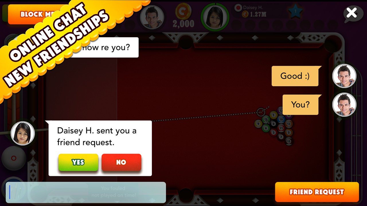 While you are enjoying the social game with your friends, you will be in a sweet competition. Apart the classic “1 to 1” eight balls, experiment the unique “1 to 4” competition for fasts and goods players where you can get 4 times more coins in one game.