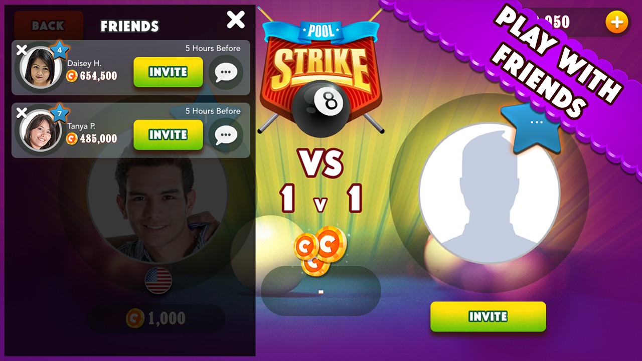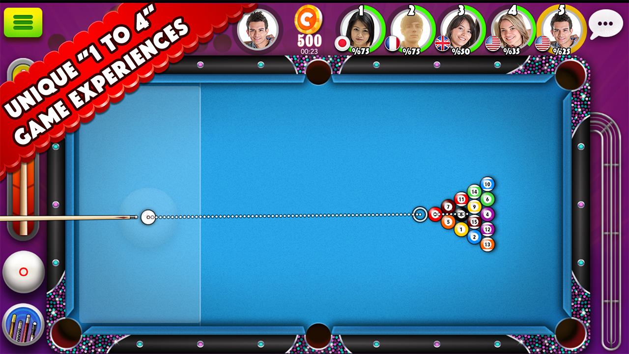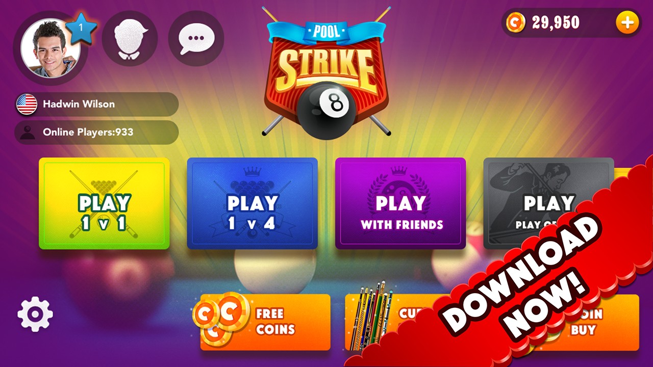 Ever tried unique 1-4 game play of Pool Strike? Try and see how you can win 4 times more in one game at online billiard. Download now and get your free coins.