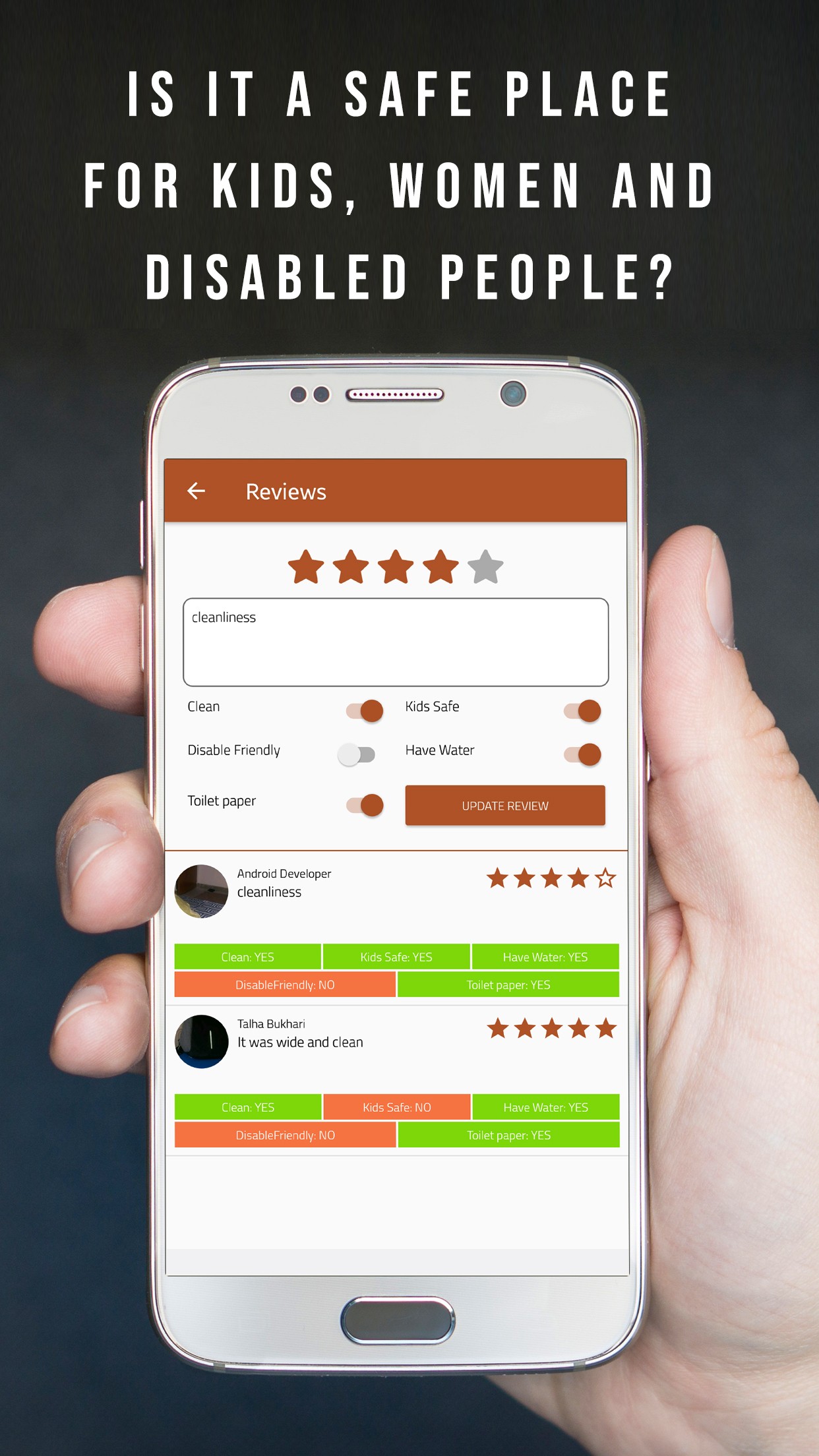 It uses a crowd sourcing solution in which users get to add toilets and review them based on different criteria such as being kid-friendly, being suitable for disabled people, having water and tissues.