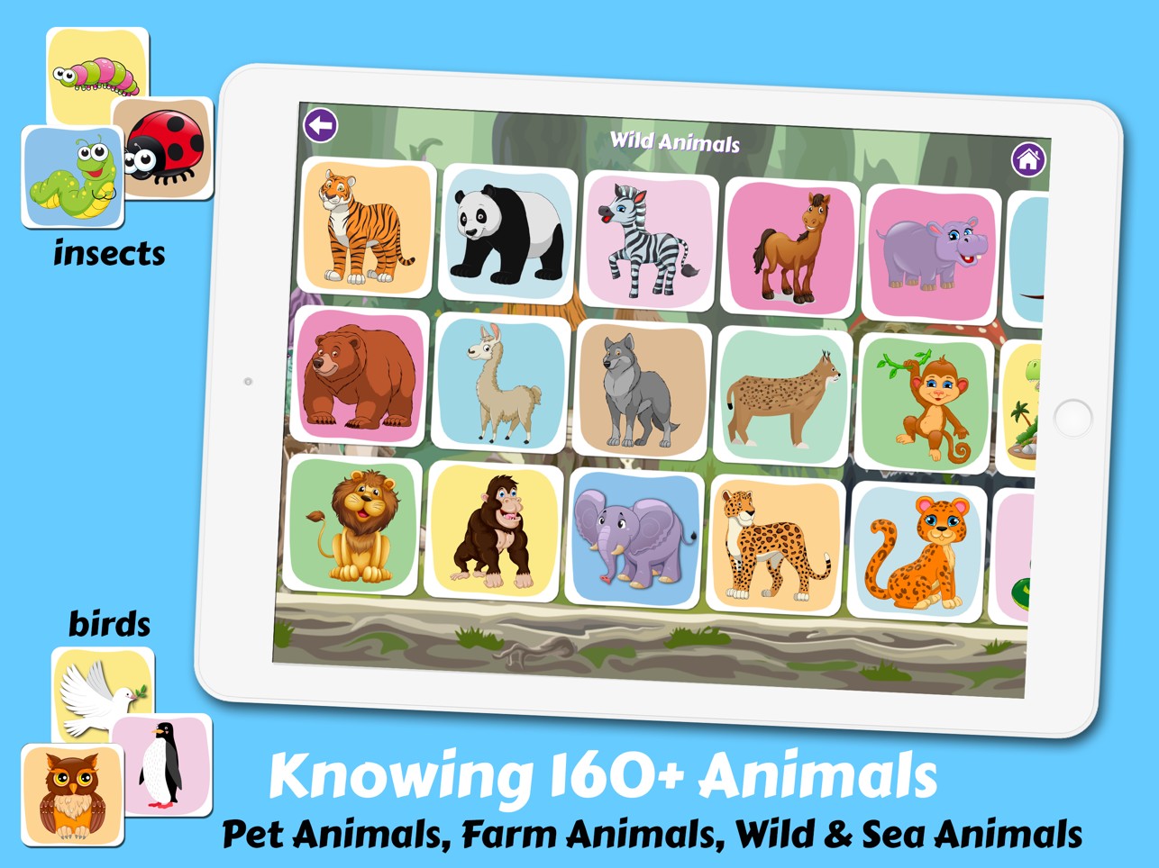 Pet Animals (15), Farm Animals (13), Wild Animals (32), Sea Animals (14), Birds (20) and Insects (14)