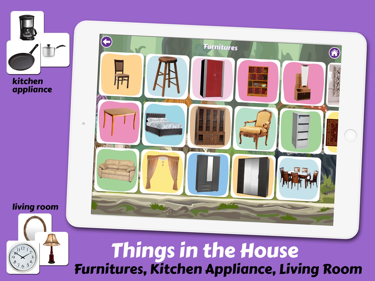 This preschool game contains 36 various categories of 850+ things (objects), that a toddler need to learn it's name at Preschool. These categories include Alphabets, Numbers, Colors, Shapes, Body Parts, Clothes, Furnitures, Electronics, Vehicles, Foods, Fruits, Flowers, all kinds of Animals and many more.