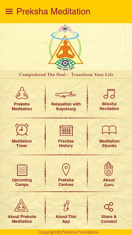 Preksha meditation is a simple meditation technique with its root in Jainism - a Jain meditation technique.However this app is for anyone with an interest in developing their physical, mental, emotional & spiritual well being, it is not keen in pushing any particular belief system, religion or otherwise.