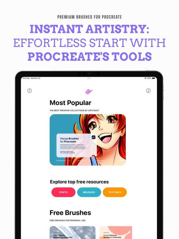 Discover the future of digital artistry with our groundbreaking application, enriched with some of the world's most exquisite tools crafted for Procreate. With us, you'll experience unparalleled choice and supreme quality.