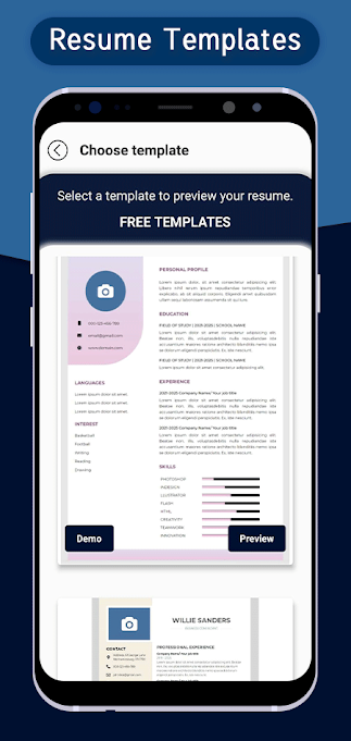 Premium Resume Builder: Professional Templates app will help you create professional resume & CV (Curriculum Vitae) with the help of more than 50+ resume or CV template for job application in significantly less time. Only you need to fill the form once, and all the resume templates are ready to use. With a single click, you can make 50+ resumes and download, print & share.
