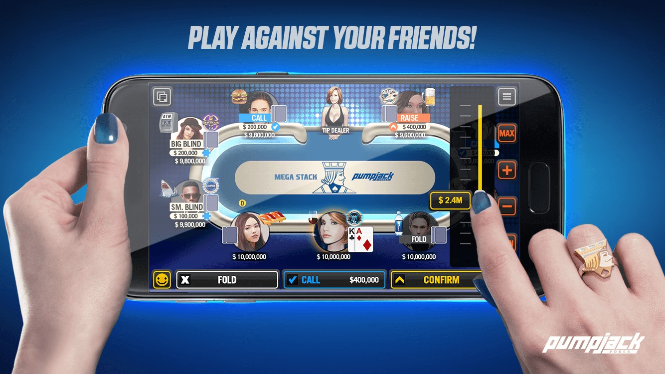 Play against your friends - Have poker night wherever you are! Truly experience social gaming, no matter where you are.