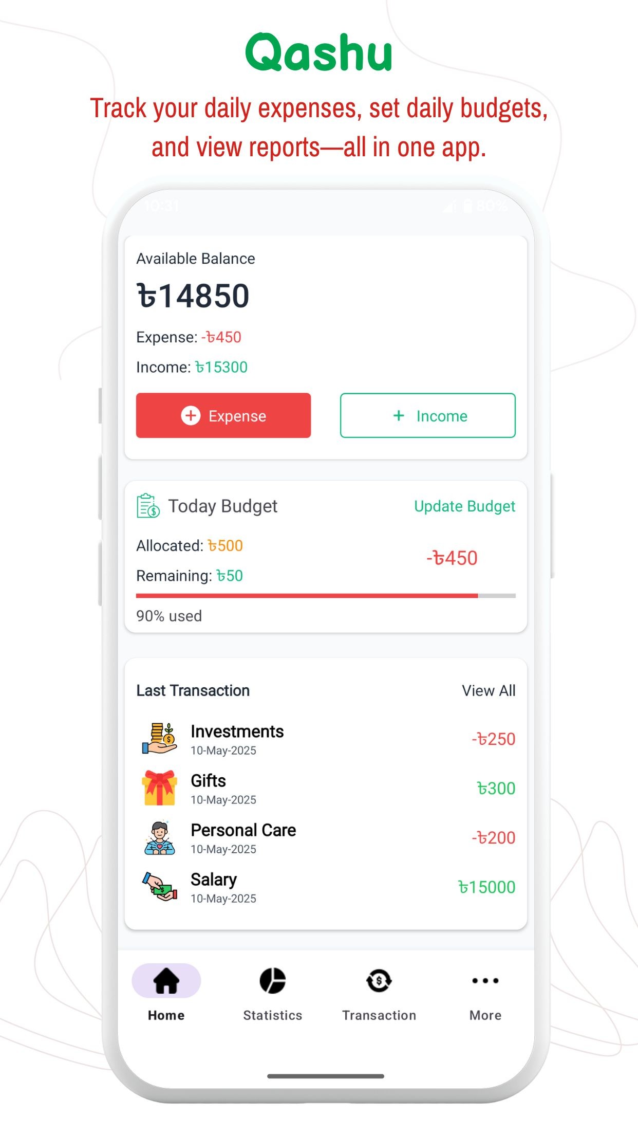 Student, Freelancer, Small business, or anyone who just wants to handle money better- Qashu makes budgeting so easy.