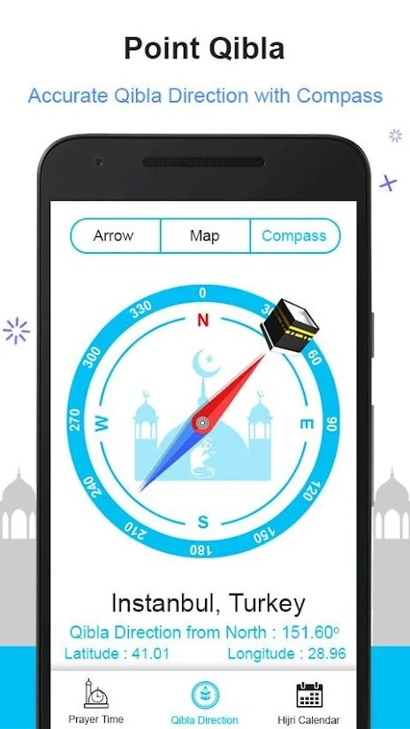 People travel a lot in different regions of the country or world ,so they don't know the exact direction of the Qibla in Makkah. Qibla Compass Al-Moazin Prayer time app have also Qibla Compass to find the Qibla direction . It calculates the exact direction using GPS navigation.