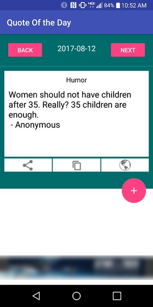 A humorous quote every day. Desktop widget included (Android). Plus you can scroll through the days and see what else is there.
