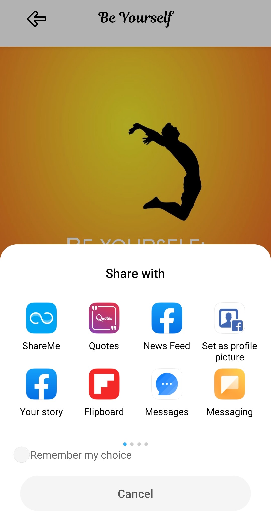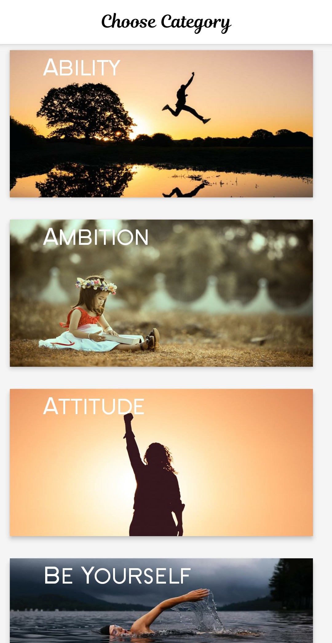 Our Quotes App contains a great collection of motivational, inspirational, Success quotes and many more. These quotes will helps you to get inspired and also inspire others by sharing these on Facebook and Instagram.