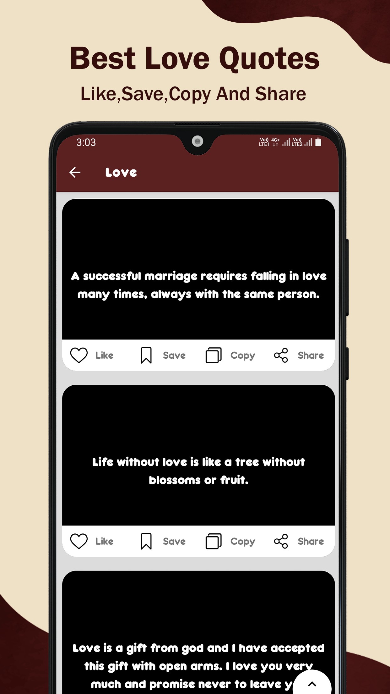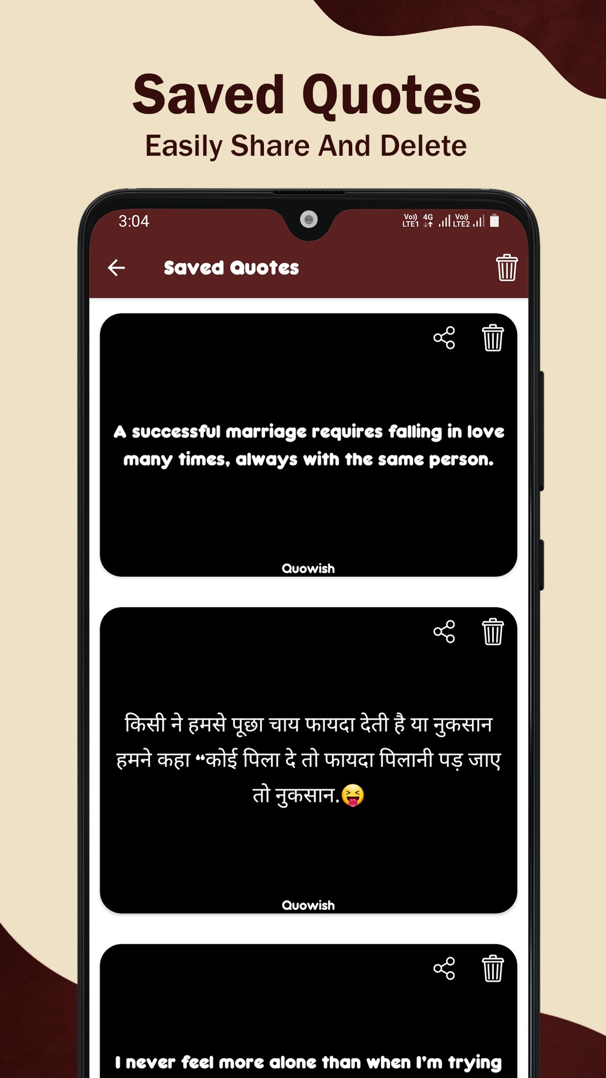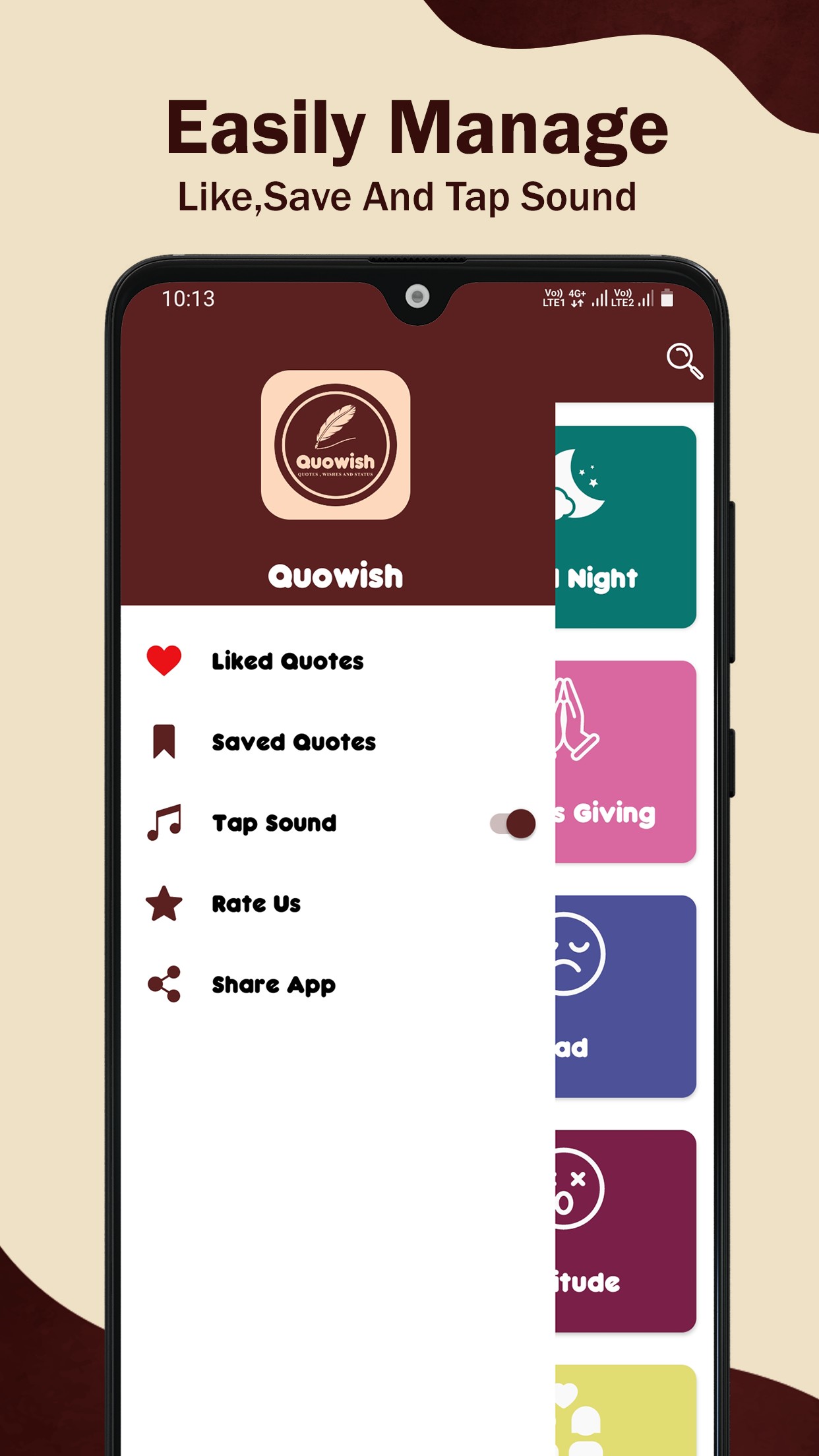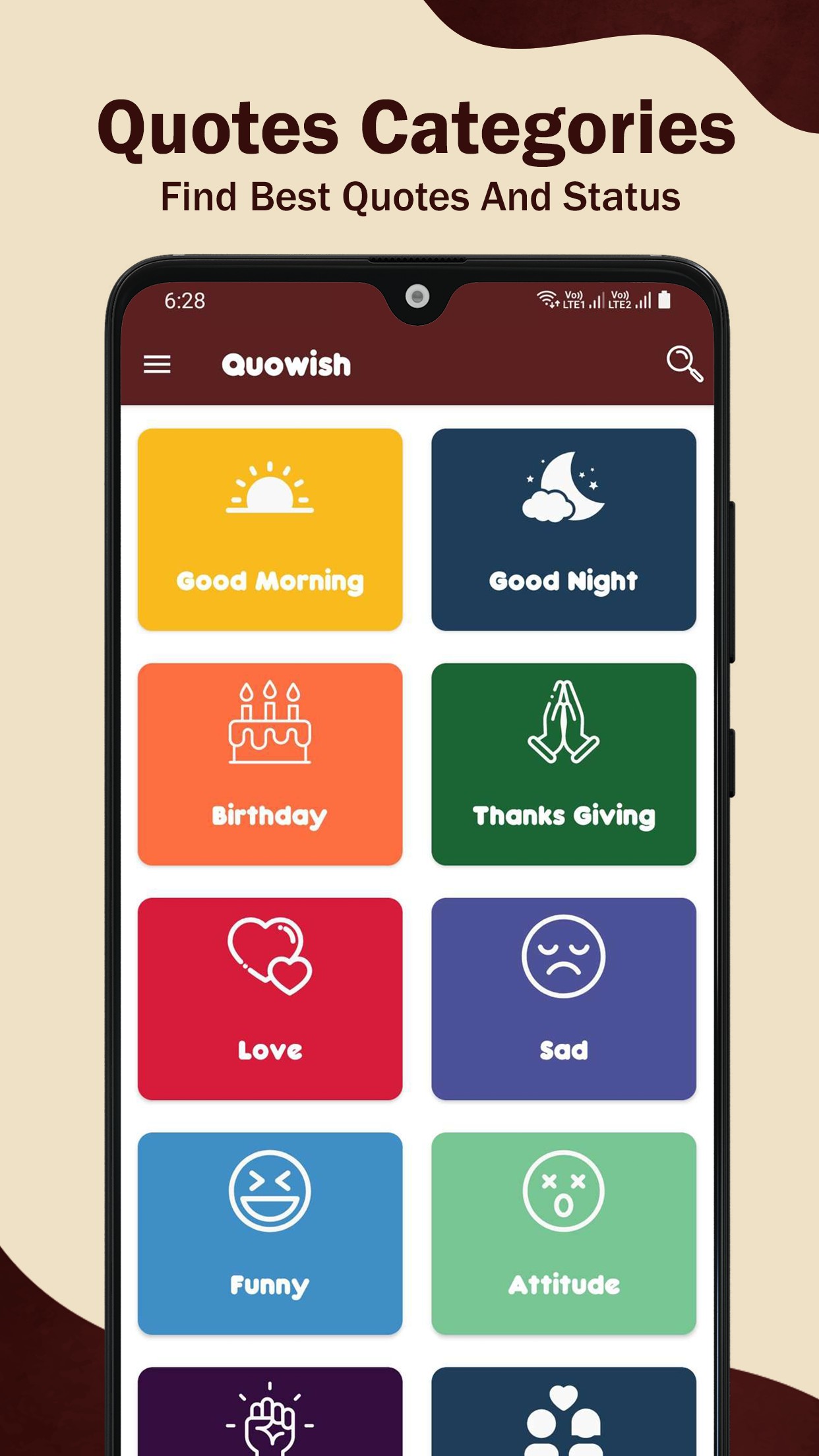 Quowish is an app that provides a large collection of the best quotes, wishes and statuses for different categories.