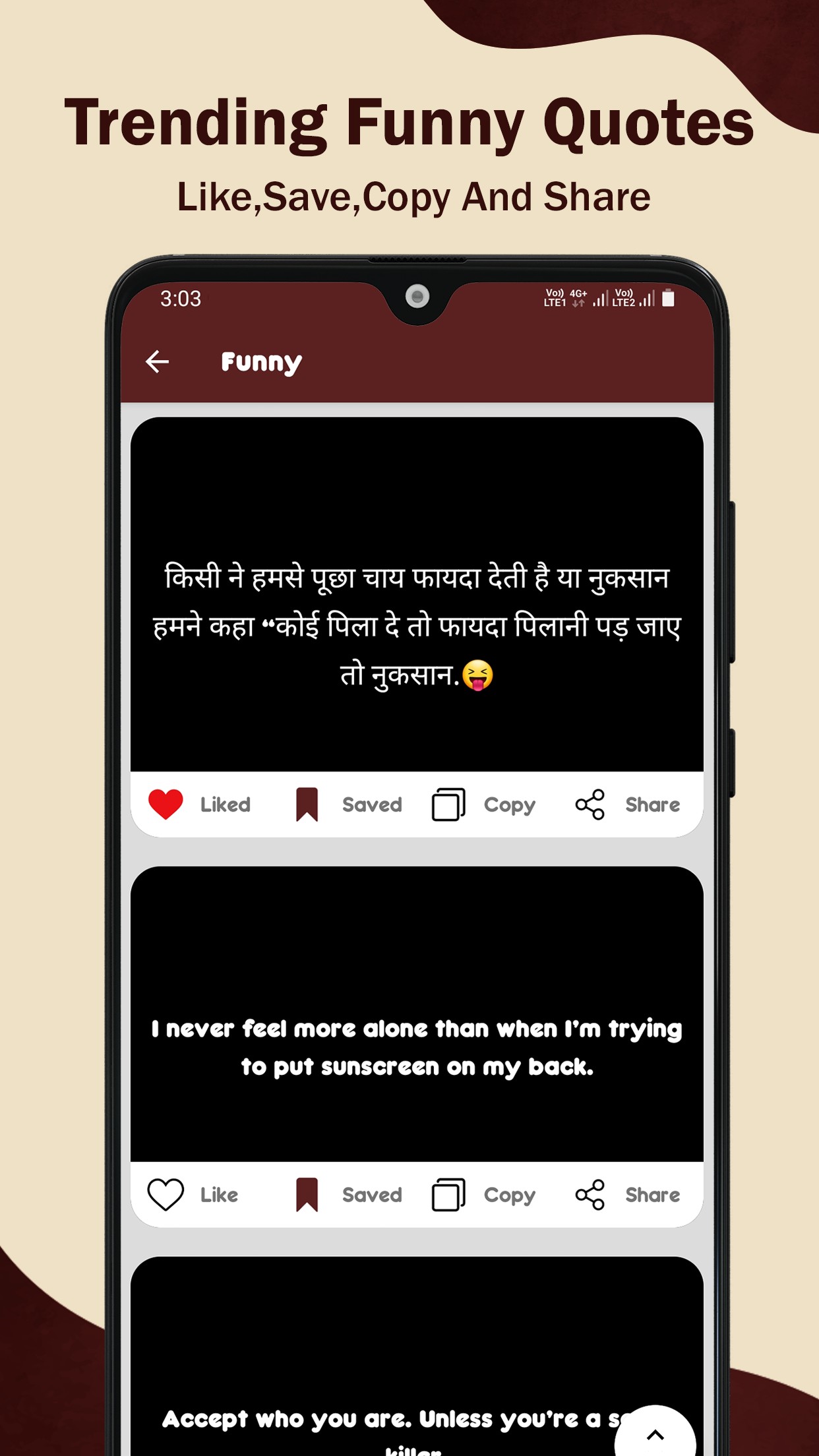 Nowadays, people upload pictures/posts on social apps. Where they want a nice thought(sentences) to get attention from the audience. So, quotes and status help them easily to find the best captions for social media posts.