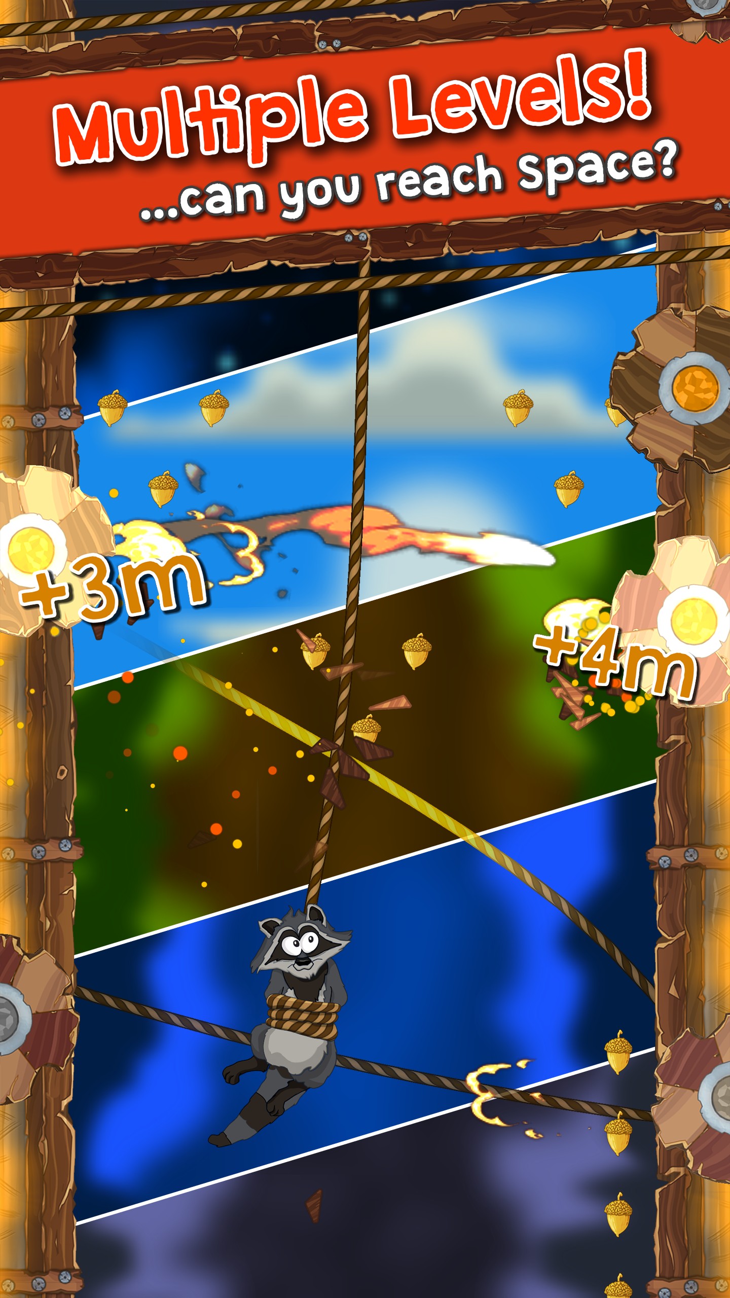 Help the Raccoon escape the fiery pits where he is imprisoned! Connect the gears that will pull him up while avoiding various enemies. This is a fast paced endless runner where all your attention and skill will be needed!