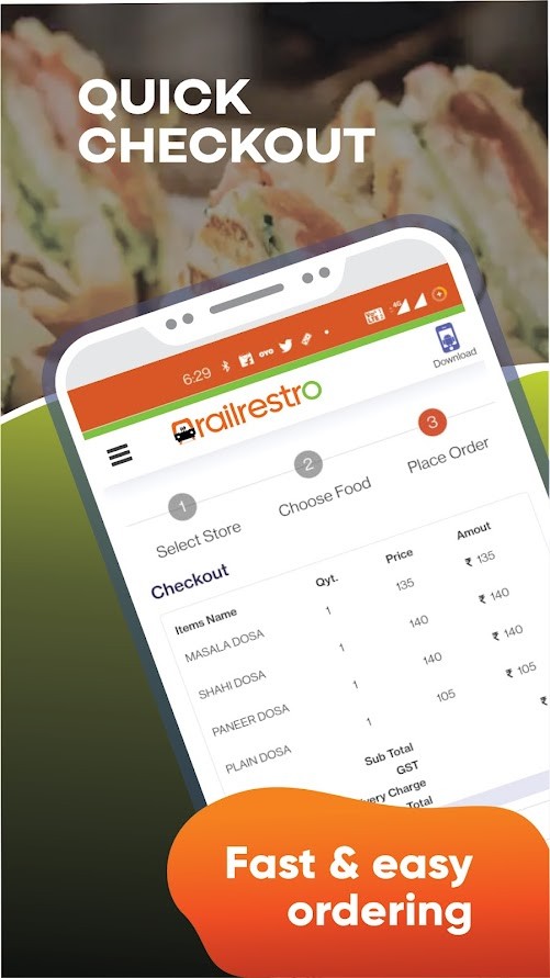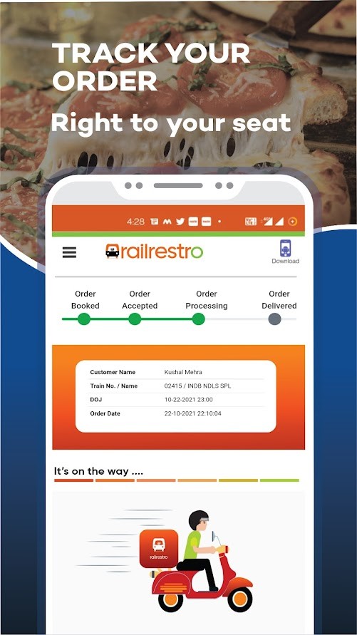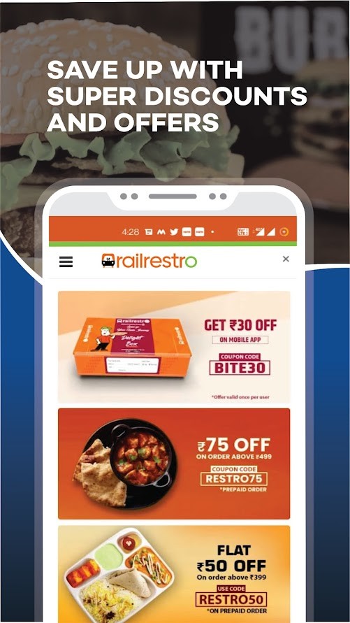 Install the RailRestro Android App and book a meal of your choice for your train journey anywhere in India.