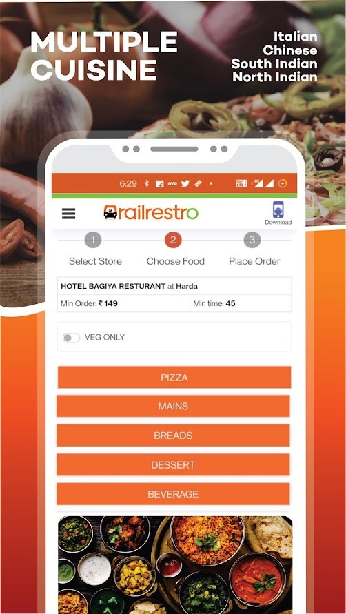 2. Select Restaurant and Choose Meals: Select any of the partner restaurants and browse the menu to choose and order your favourite food in train.