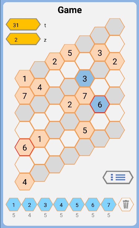 Hex49 is an exciting, challenging and meditative logic game in the tradition of the game Sudoku. But our playing board consists of hexagons: 7 rows and 7 columns have to be filled with the number tiles 1 to 7. Hundreds of tasks are waiting for you. Additionally, you get a new exciting weekly task. Fight for gold, silver and bronze. Try to fill the playing board fast and correctly - there are several solutions. A whole new fun is waiting for you. A whole new number puzzle.
