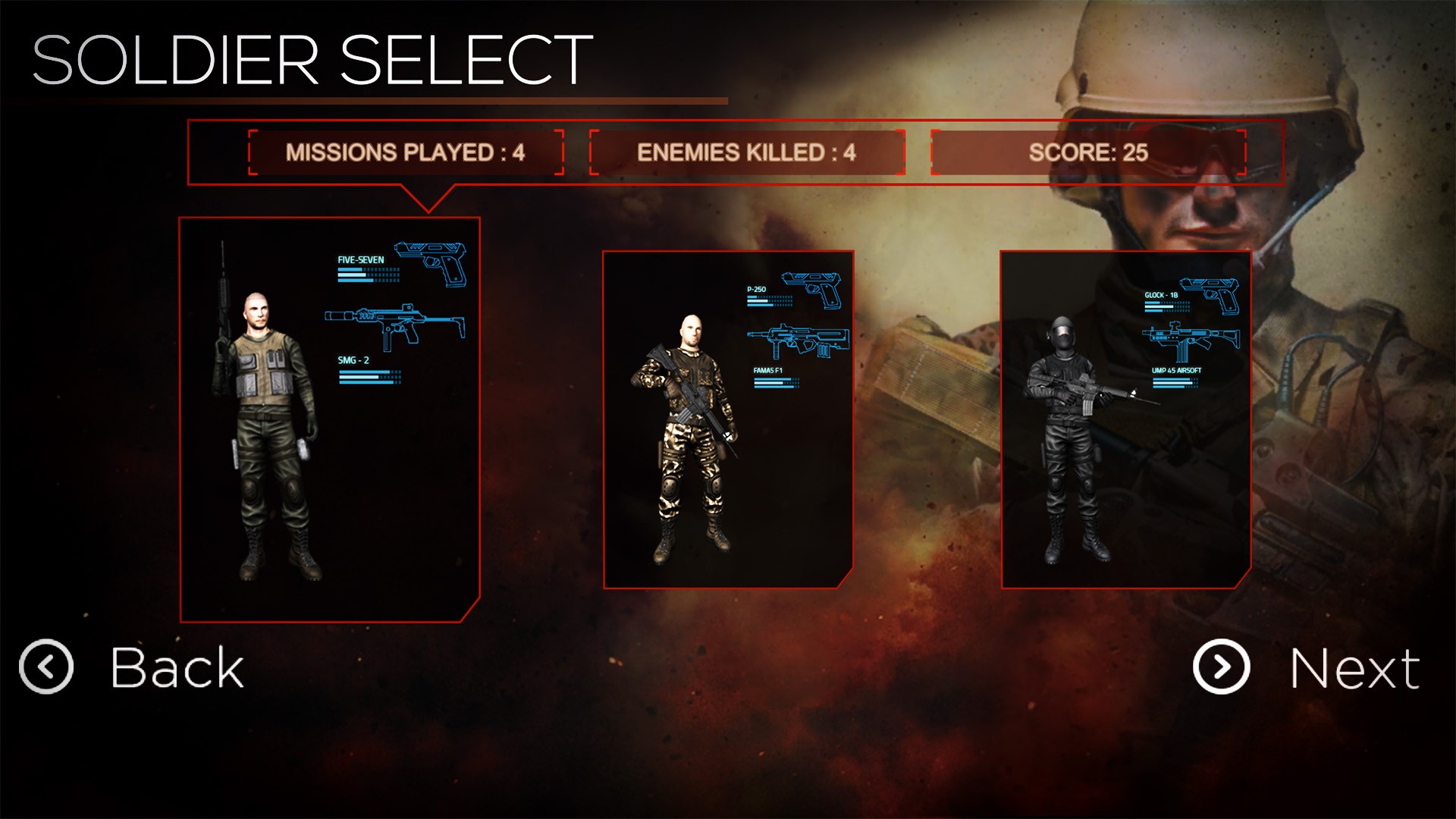 Multiple Characters are available from the different task forces with unique special abilities and weapons. Fight the terrorists in different locations and different time zones.