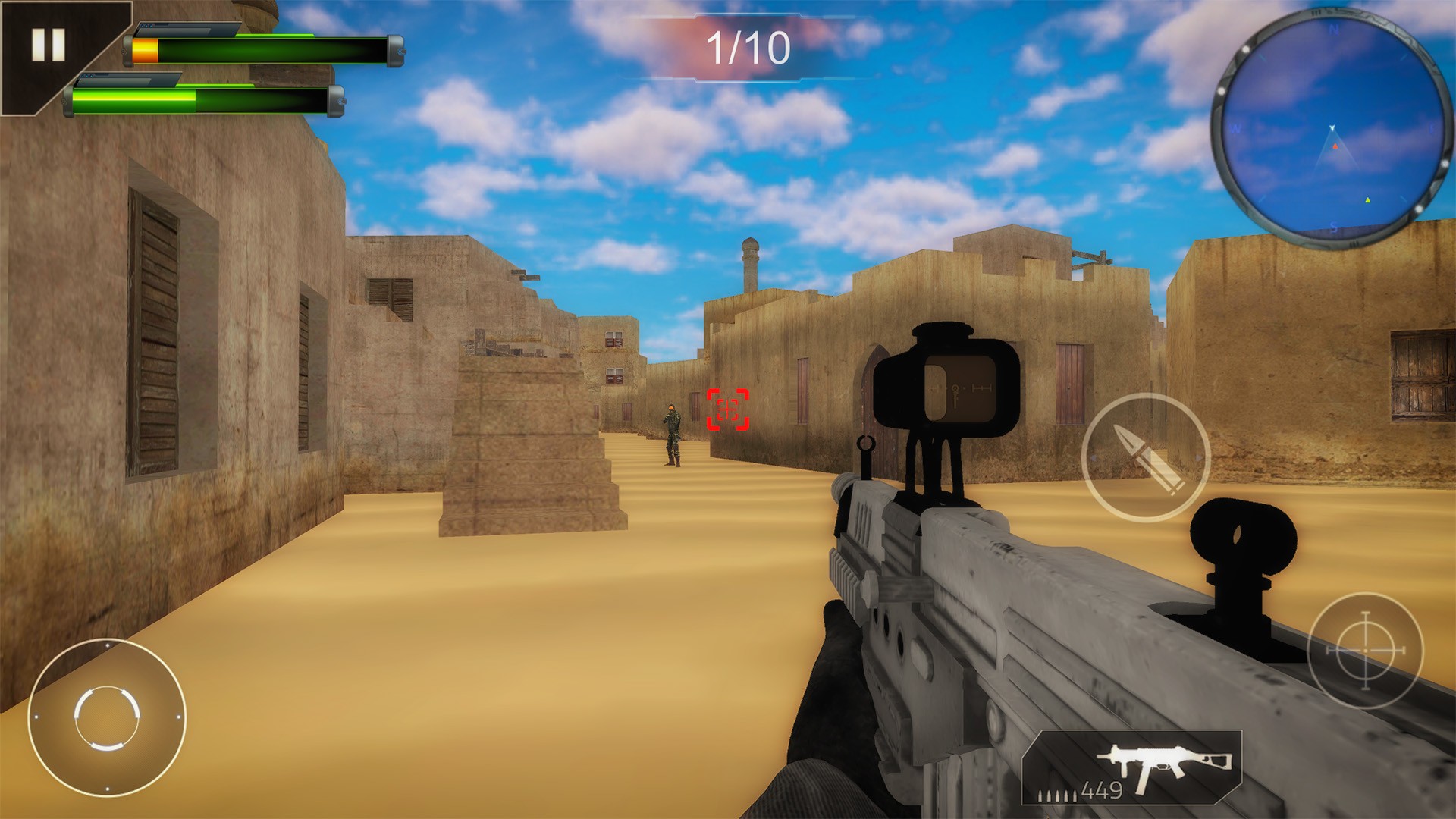 Real Gunshot Shooting Champion is a first-person action shooting game, Fight enemies in the hostile desert environments. Use your combat skills sets and tactics to hunt the deadly enemy soldiers in desert outposts and camps. Use your shooting skills acquired in assassin and marine training to eliminate hostile enemy soldiers with strategy and precision.