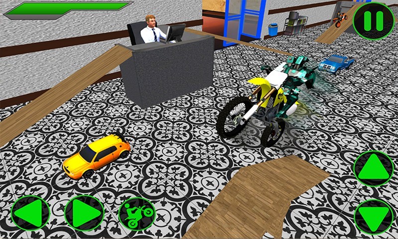 Real Office Racing Bike Stunts 3D is amazing game with interesting gameplay where you play as Dirt bike robot rider and perform different thrilling stunts in luxury office environment. Hit different office object and throw them hard to increase your experience and make high score. Choose your favorite dirt bike or sports bike and different robots to play this racing simulation. Exciting missions are ready to entertain the user and win the office bike race.