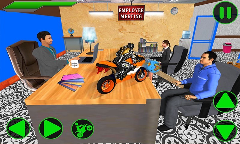 Real Office Racing Bike Stunts 3D is new Bike stunts racing game where you play become robot bike driver and perform thrilling stunts with the help of your driving skills. This racing game is full of fun and entertaining. You can drive sports bike as well as Heavy Bike and beat your rival time with the help of super-fast speed. You can jump off extreme ramps, over the tables and hit the different objects to get coins or increase your experience.