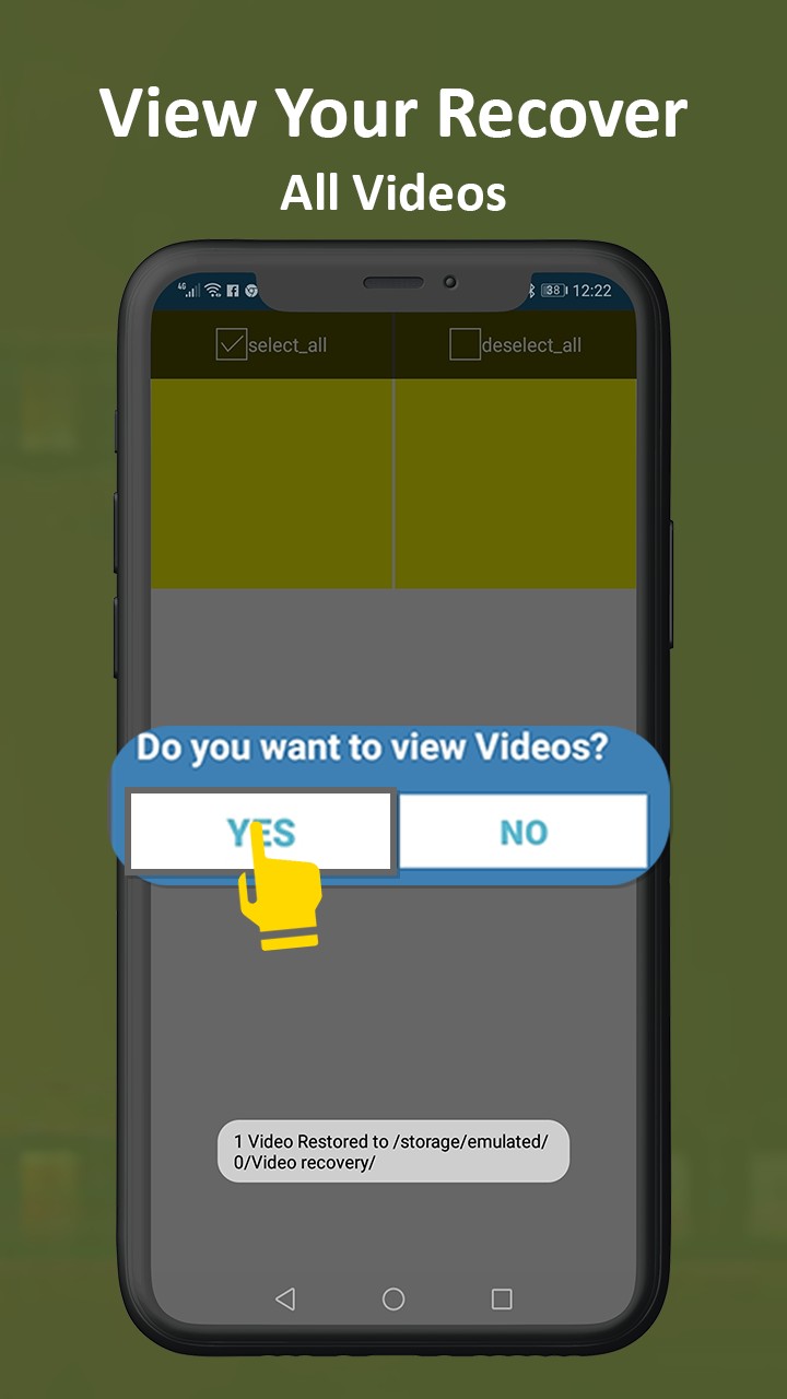 The video recovery app restores deleted files from mobile phones and tablets if you are not able to restore then send us feedback.