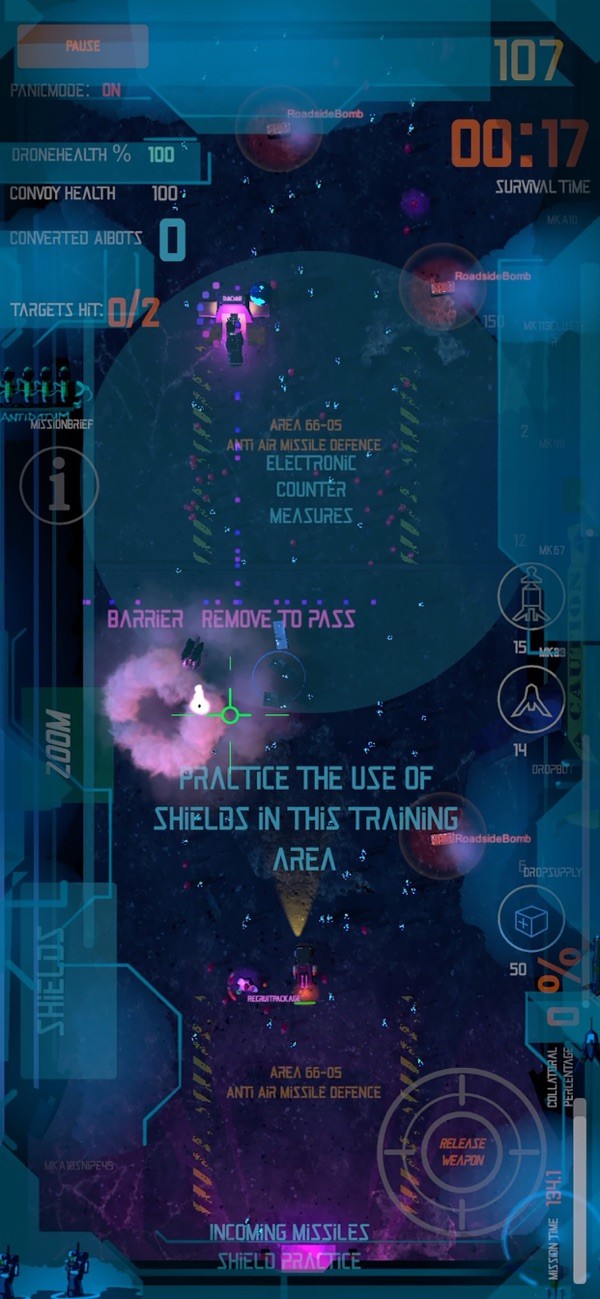 The goal is to convert the planet back to Human Biolife control and stop the AI Insurgent Coup. Use Shields to protect your Drone from incoming Air to Air Threats