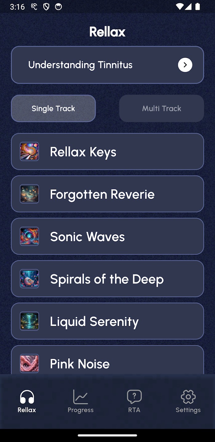 Custom Therapy Options: Manage your tinnitus with therapy that evolves as your hearing health improves. Rellax is your personal assistant in finding relief and living a more peaceful, tinnitus-free life.