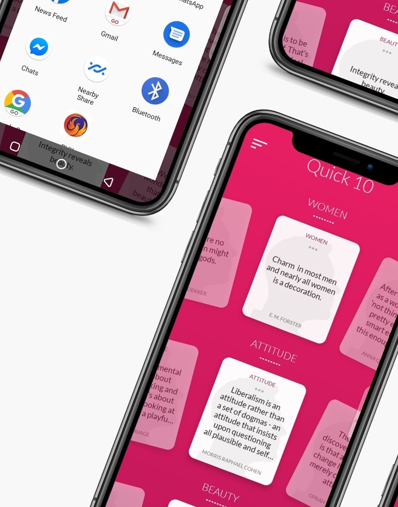 “Respect Women Quotes | Women Empowerment Quotes” app design is beautiful, immersive, and intuitive which supports google’s recommended design language i.e Google Material Design principles. All of the Quotes are embedded within an App so no need for Internet connectivity once “Respect Women Quotes | Women Empowerment Quotes” App is installed.