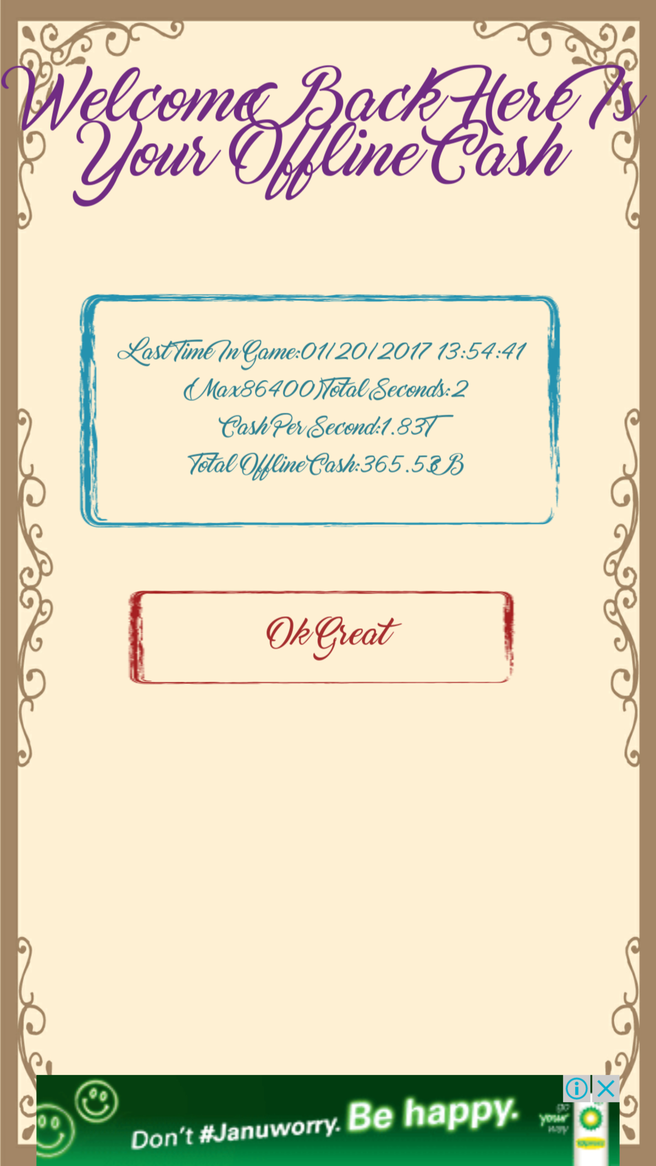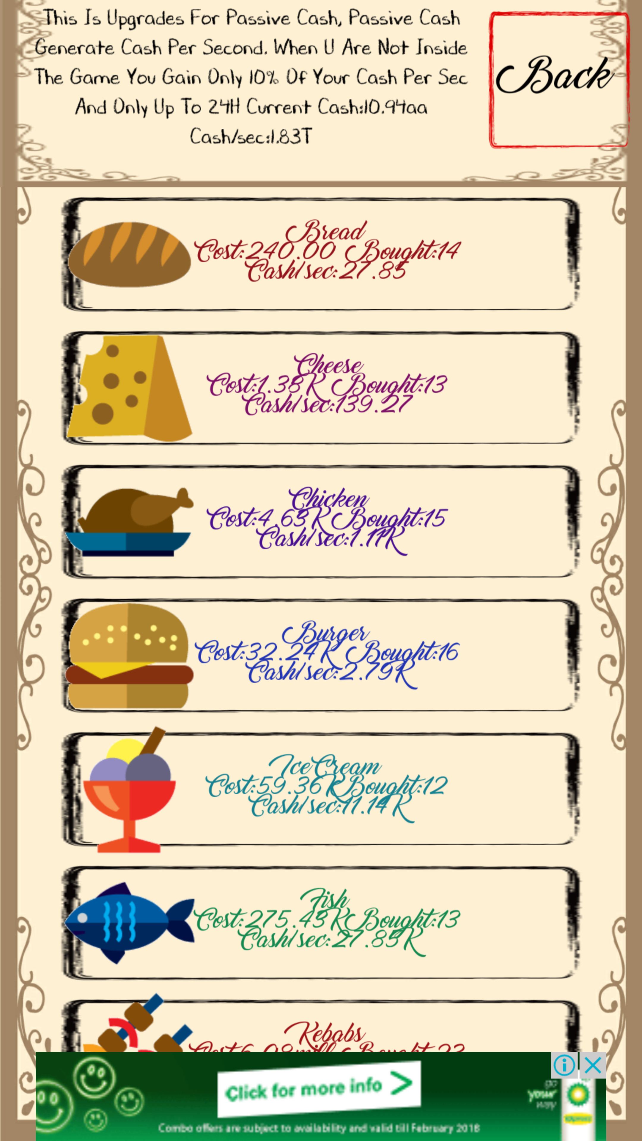 Not enough passive cash per second well go and upgrade your cash per tap and use those fingers for little while to get that cash.Tap enough for the bar to fill and get 15% of your cash instantly.