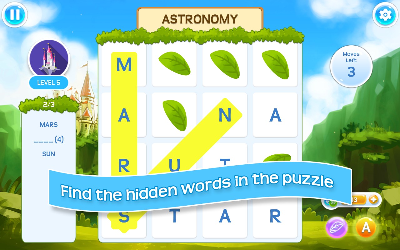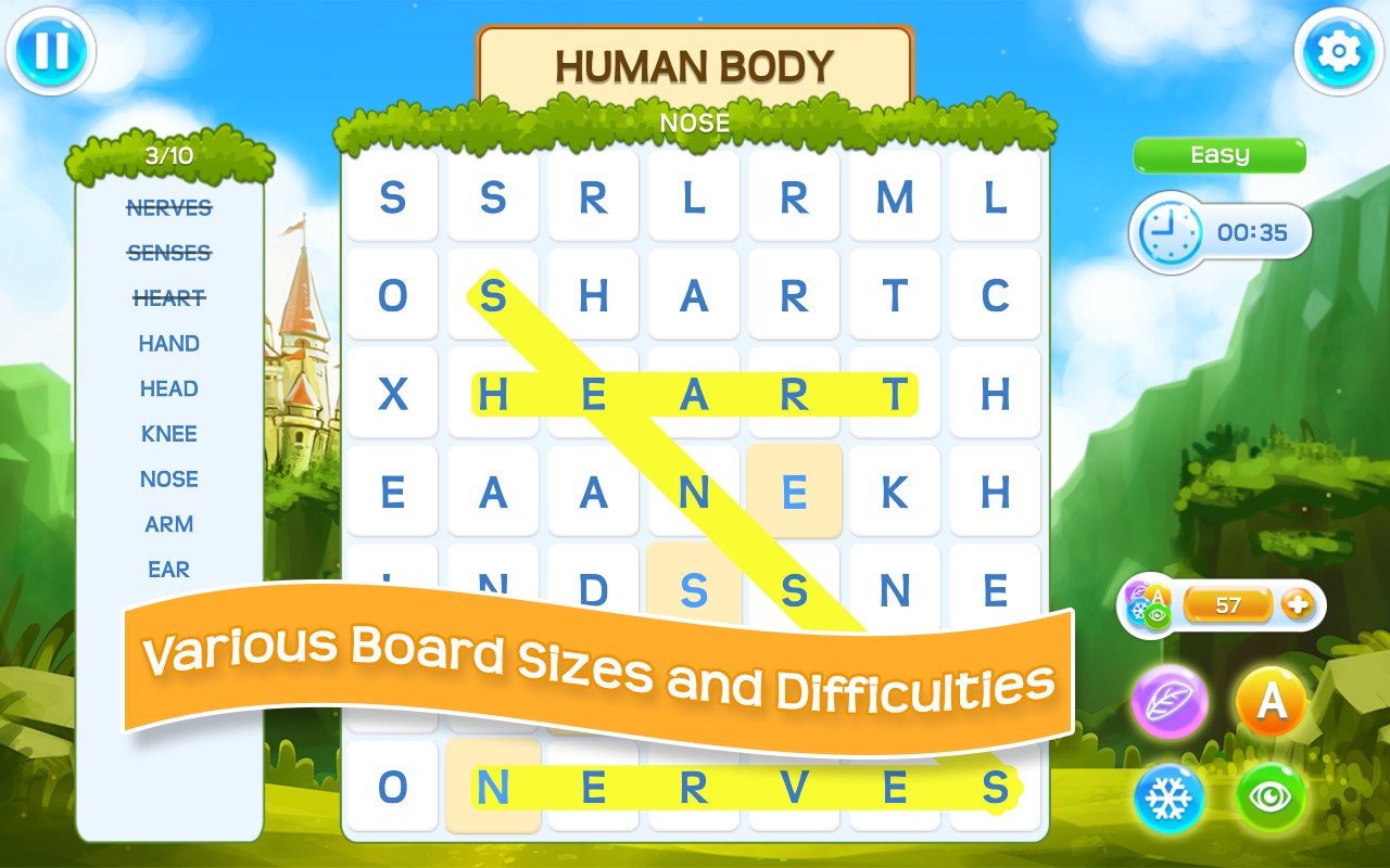 - Easy to use gameplay: Just swipe your finger on the letters to mark the word