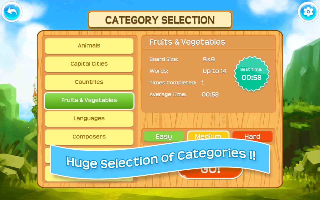 - More than 40 word categories, such as: Countries, Cities, Actors & Actresses, Animals, Bands, Singers, Composers, Harry Potter, Star Wars, Game of Thrones, Sports and many many more