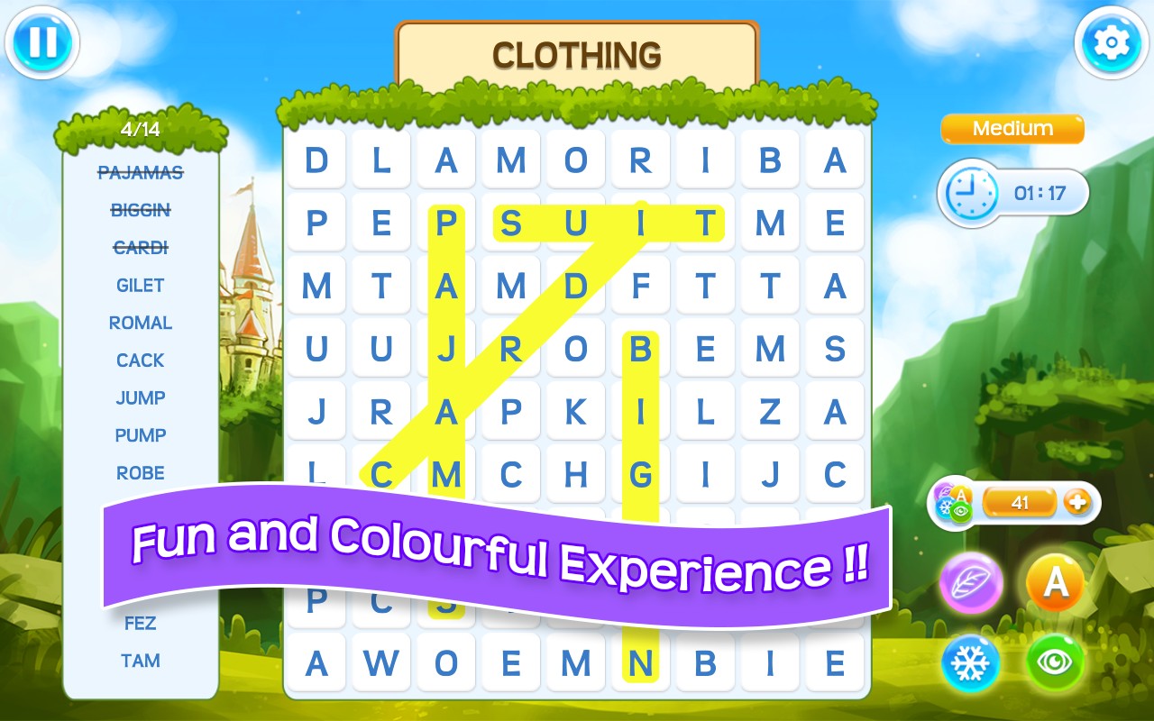 Play an endless number of puzzles in various difficulty levels in this enjoyable, addictive and free word search puzzle game.