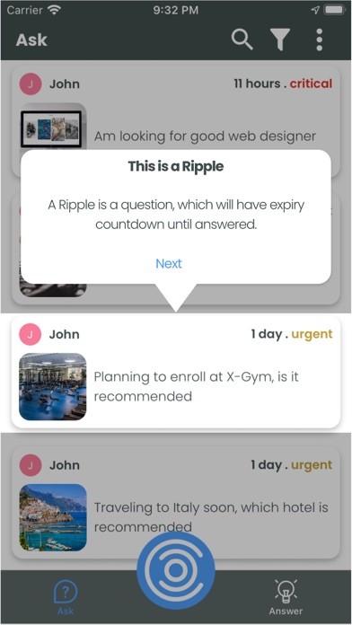 Rippler is a platform specializes in people asking about “who knows who” or “Who knows what” or ‘Who wants What” etc. This is a closed circuit that only allows your phone contacts to communicate with you and vice versa. The idea is basically an exchange of information and knowledge from and within people you know and trust. It’s been always a relief getting a piece of information from an acquaintance or a friend, rather than an unknown source. Rippler deals with people searching about a certain matter that the answer can only come from a phone contact.