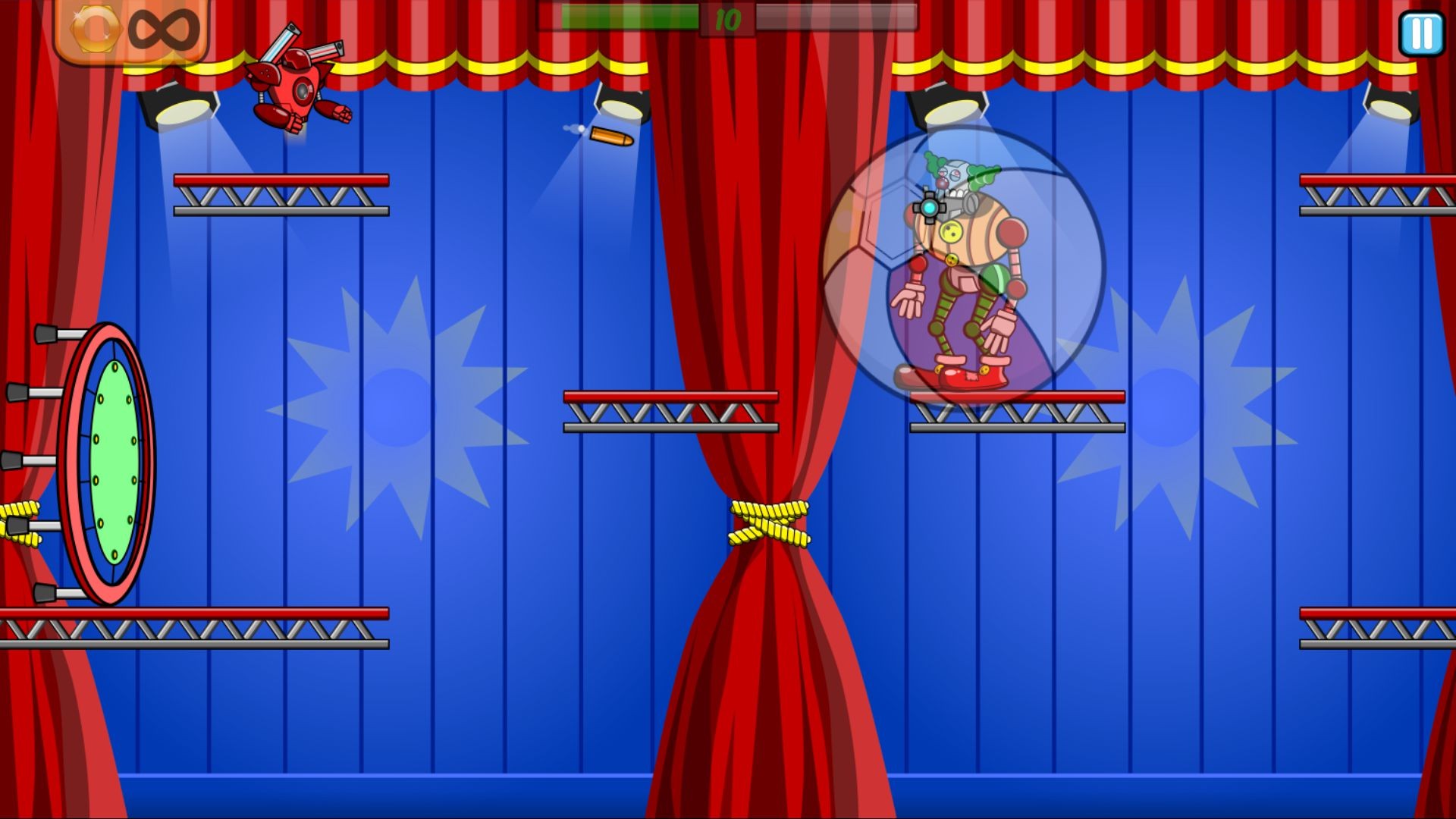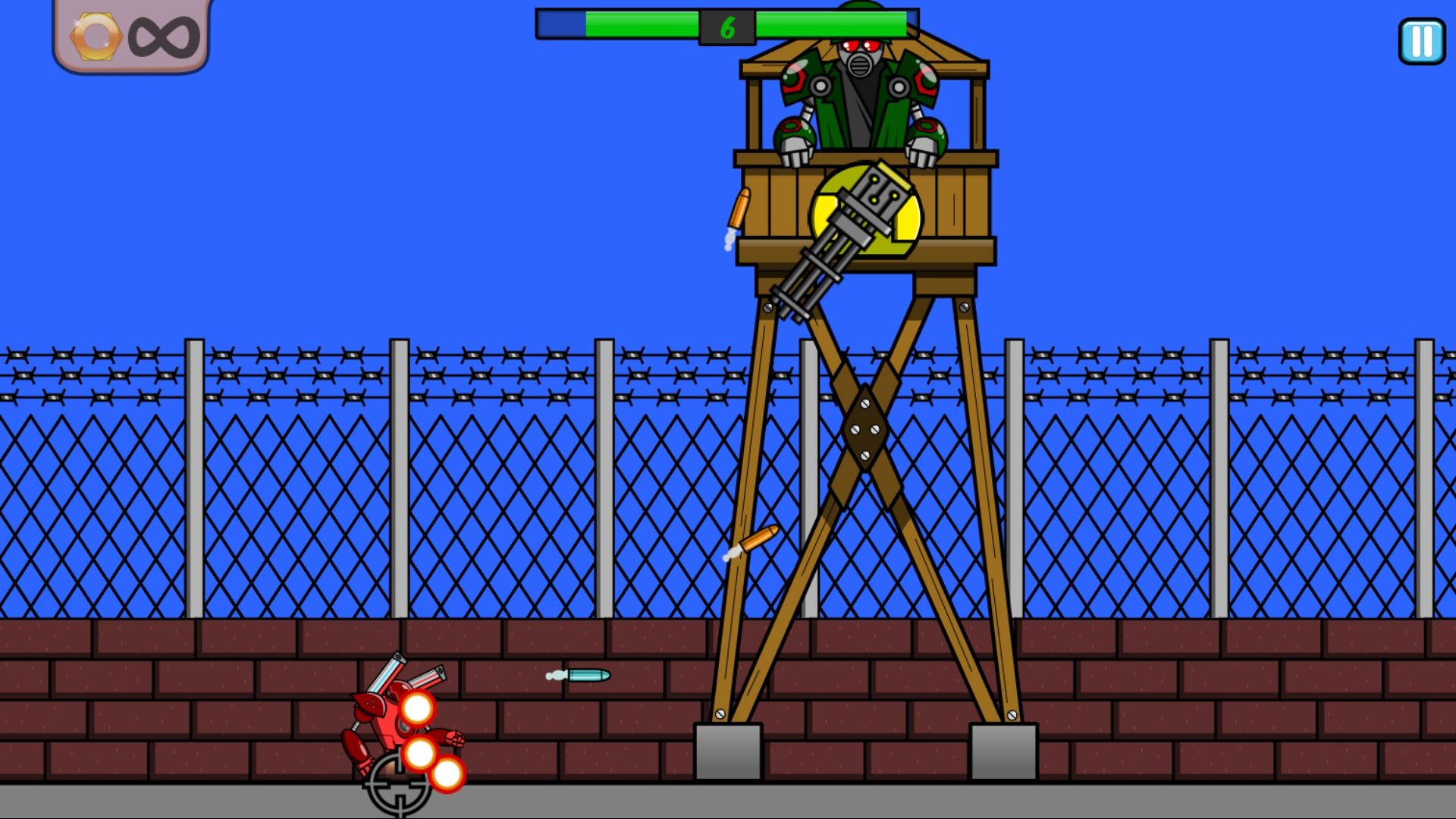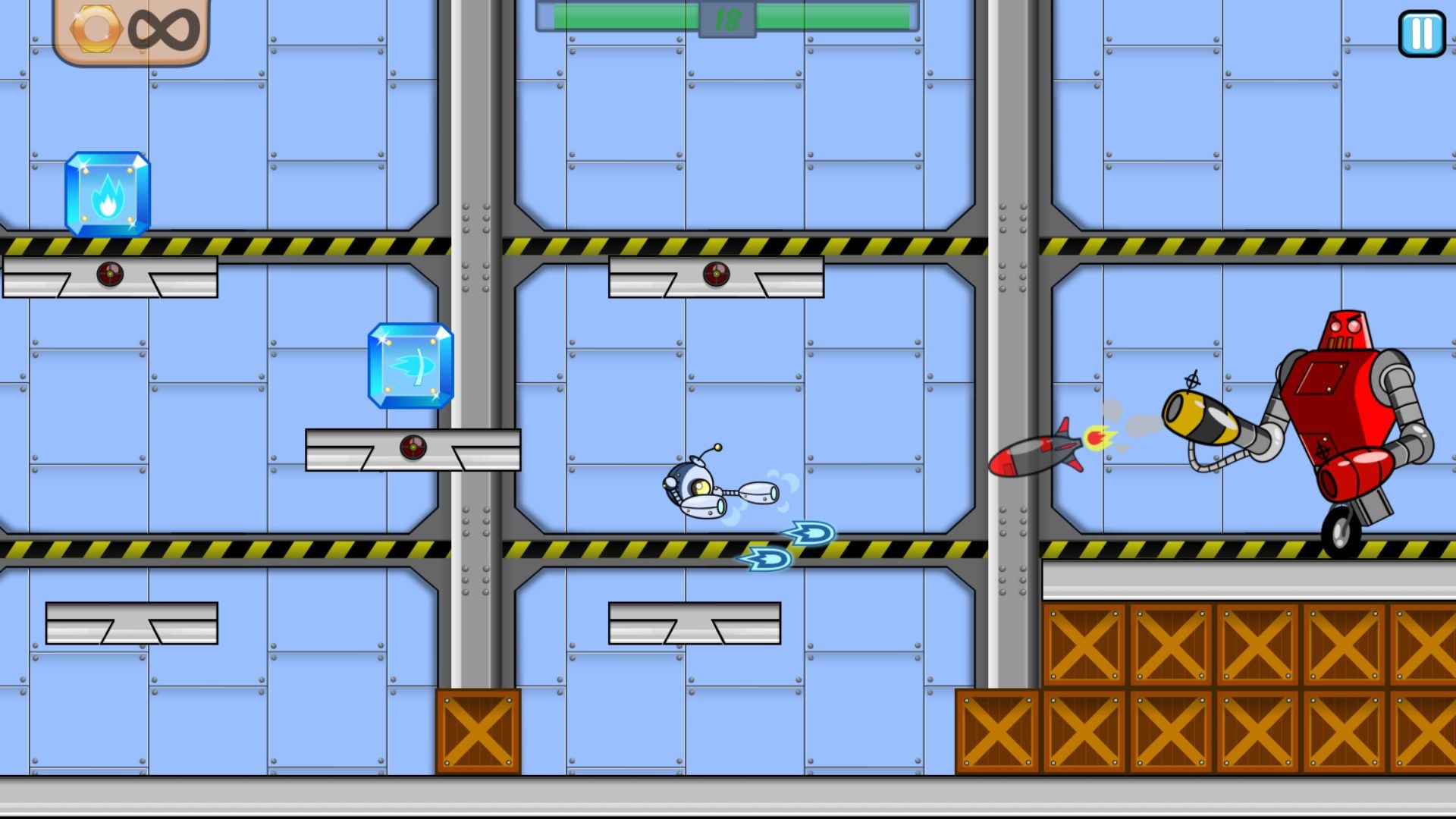 ROBO is all about shooting bad guys! Pick a robot and go through 9 levels, each filled with different maps and bosses to overcome! Every level has 3 difficulties : easy, normal, and hardcore. Unlocking levels and difficulties provides with more robots and more attempts.