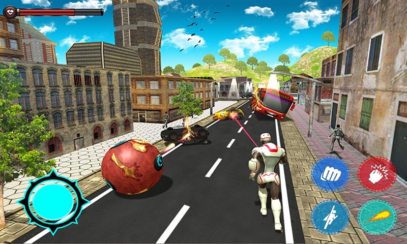 Enjoy the best thrilling mission of Robot Ball City Battle simulator, where you have to fight with the dangerous criminals of the Grand City. You can transform into the robot ball to destroy anything that comes in your way it will blast everything like cars etc. Your futurist robot can easily fly to watch the whole city as well as can destroy the criminals by their amazing attacking capabilities like dangerous fire, martial art combos, punching to the earth that will destroy any enemy in its power range. Challenging missions made this game crazier like you have to face many difficulties step by step. There type of environment is especially designed for the robot game lovers like, Grand City, dangerous criminals, and tropical forest. Kill more enemies to get more score, so you can easily unlock the other powerful robots as well as robotic balls. Show your best fighting skill that are programmed in you robot as well as in the robot ball and never give up in any task.