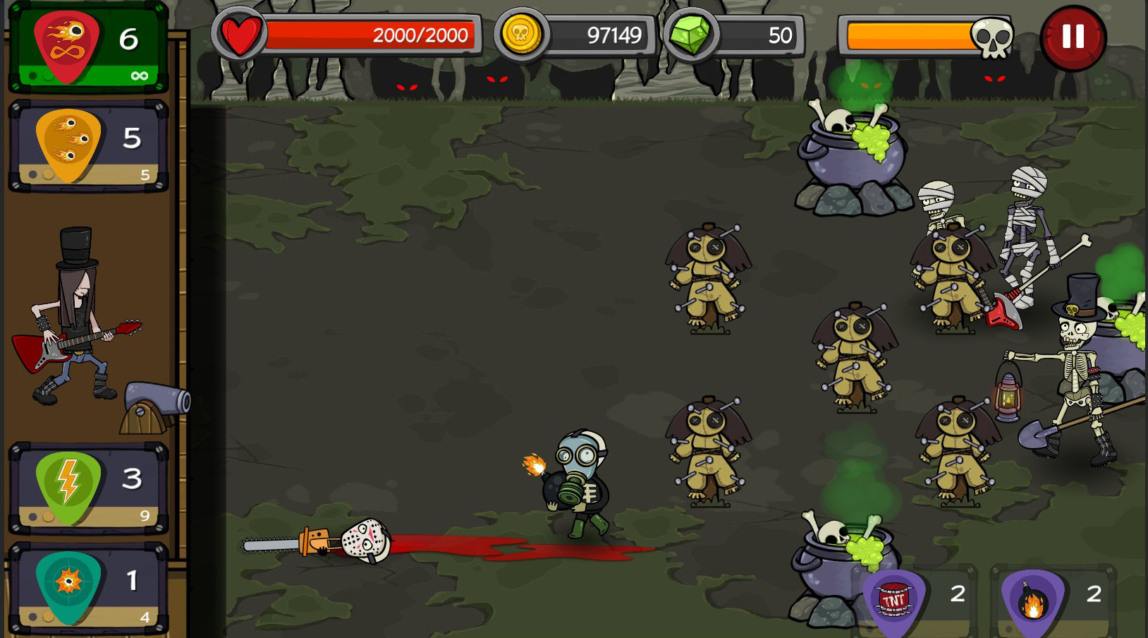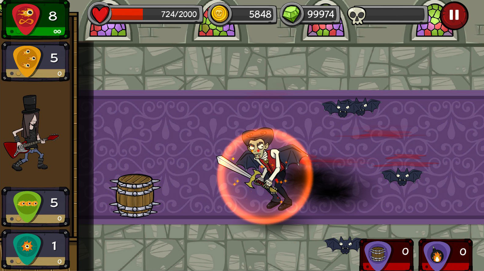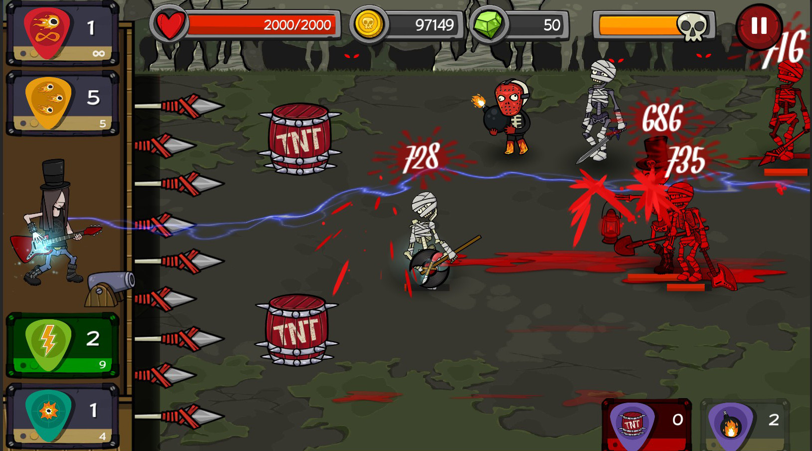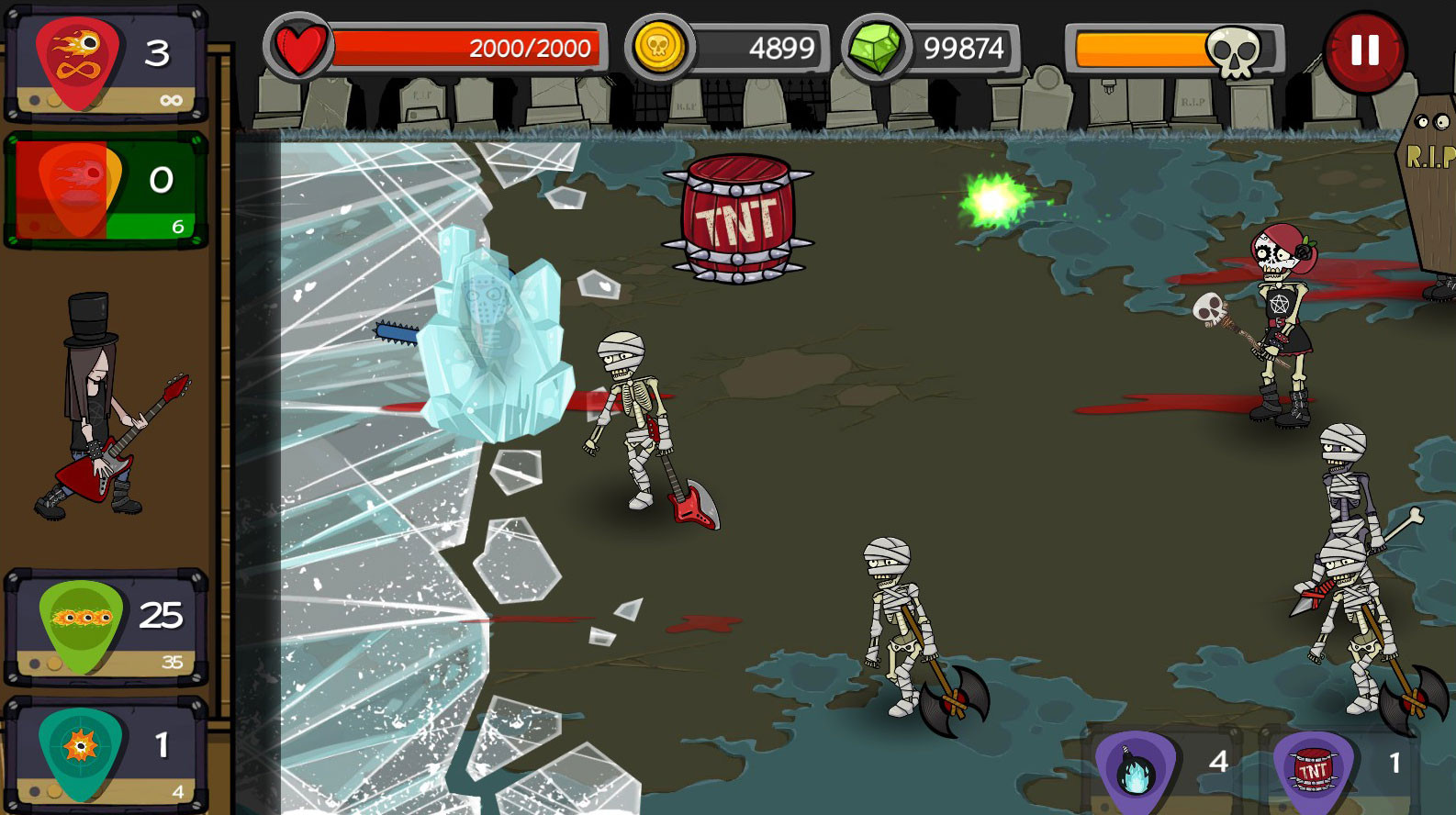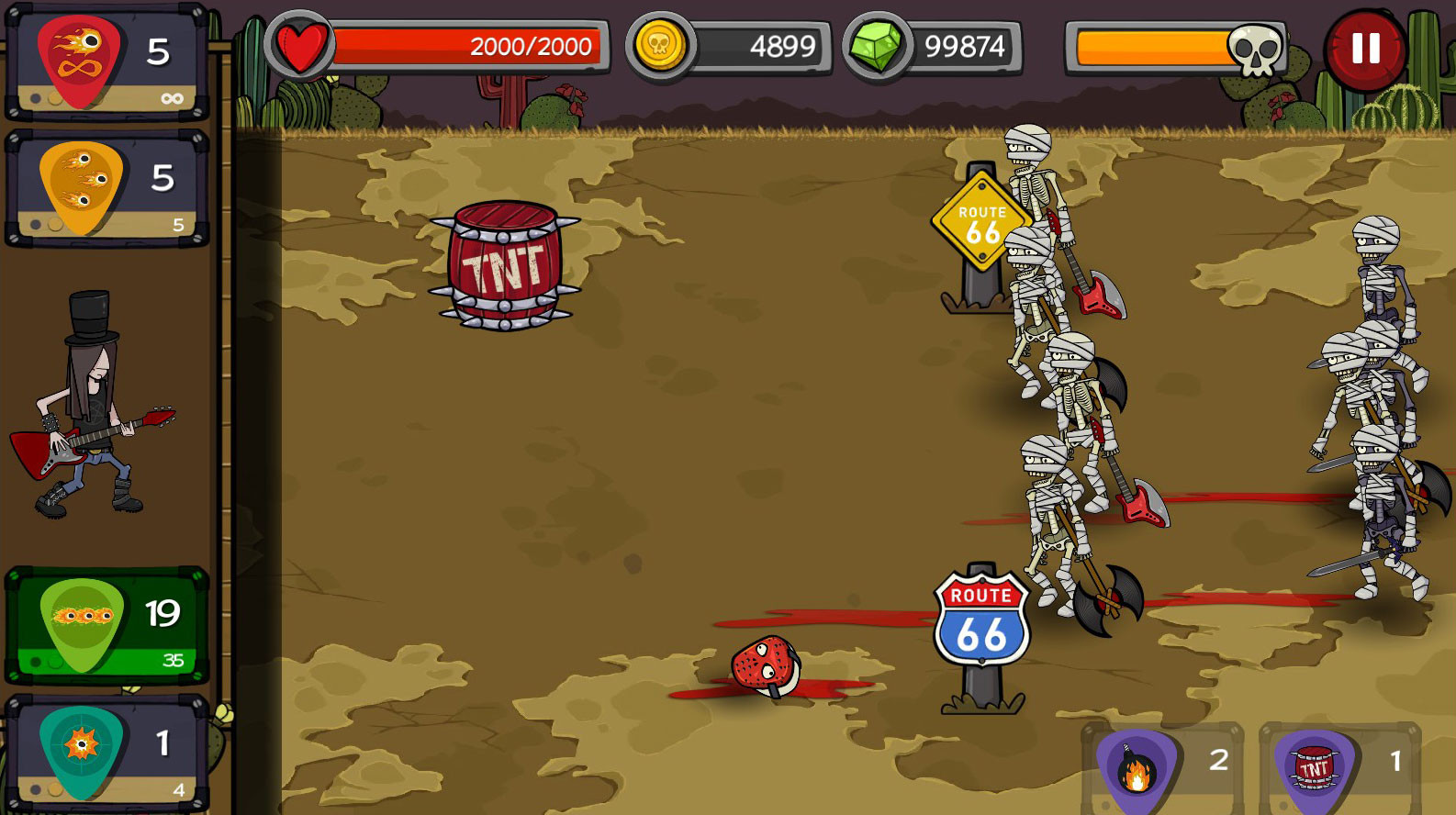 Evaluate the kind of enemy that is going to attack the stage, and choose the best weapon within your arsenal to help you defend yourself. And don’t forget to improve your magic guitar picks and your defenses, as enemies are getting increasingly angrier and stronger!