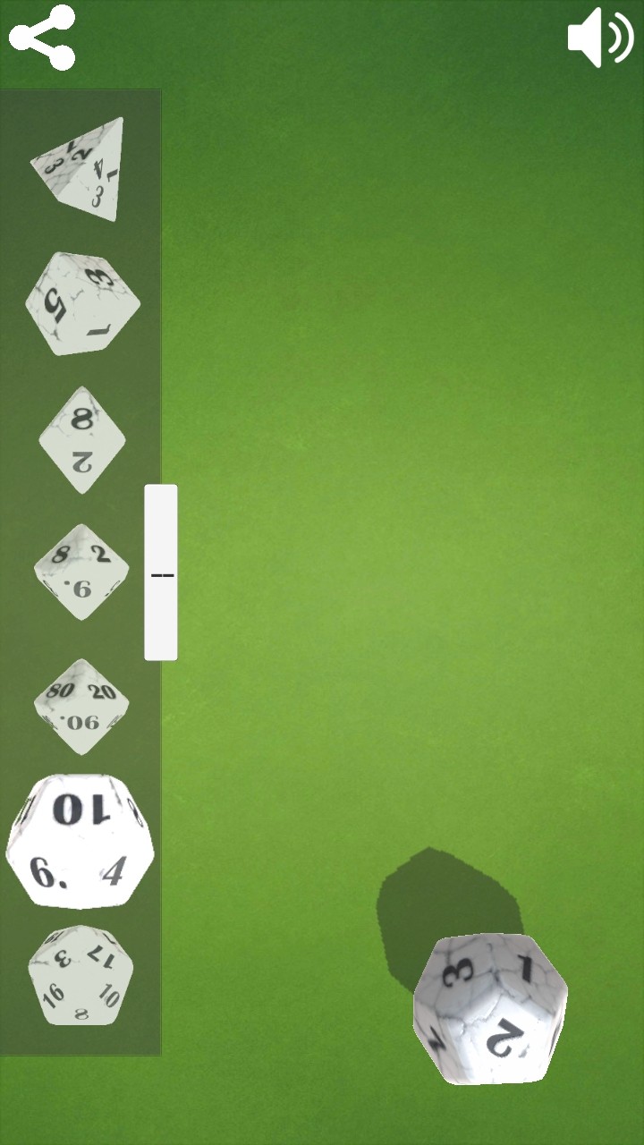 Free application to use up to seven types of virtual 3D role dices with a simple tap on the screen. If you have multitoch in the device, you can launch up to four different colored dice simultaneously.