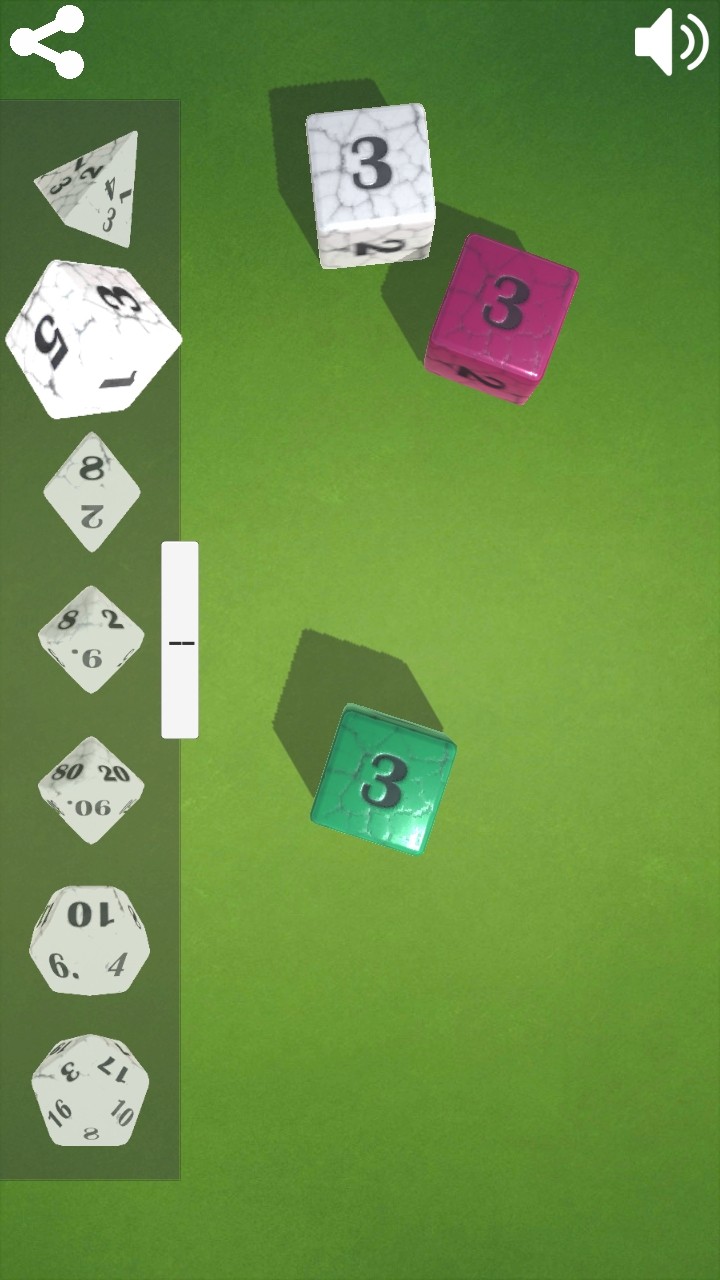 Aplicación gratis para utilizar hasta siete tipos de dados de rol 3D virtuales con un simple tap en la pantalla. Si dispone de multitoch en el dispositivo, puede lanzar hasta cuatro dados de diferentes colores de forma simultánea.