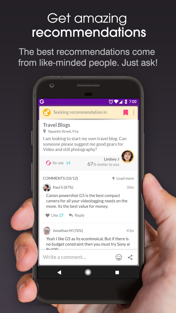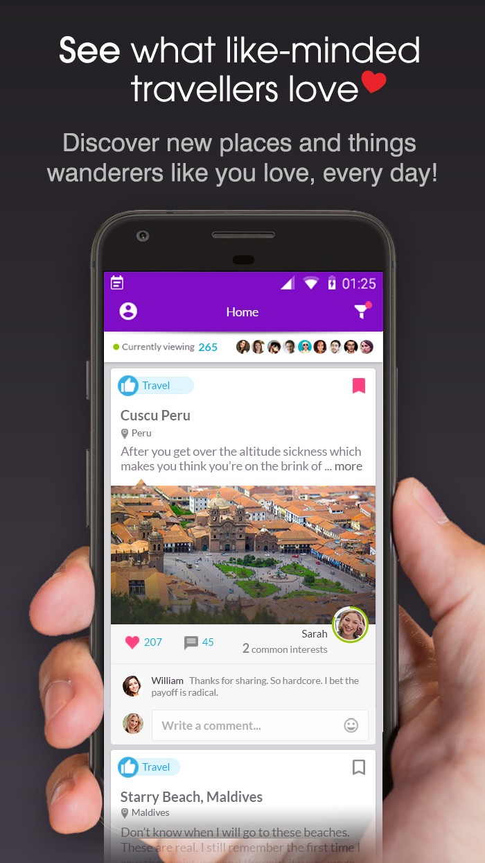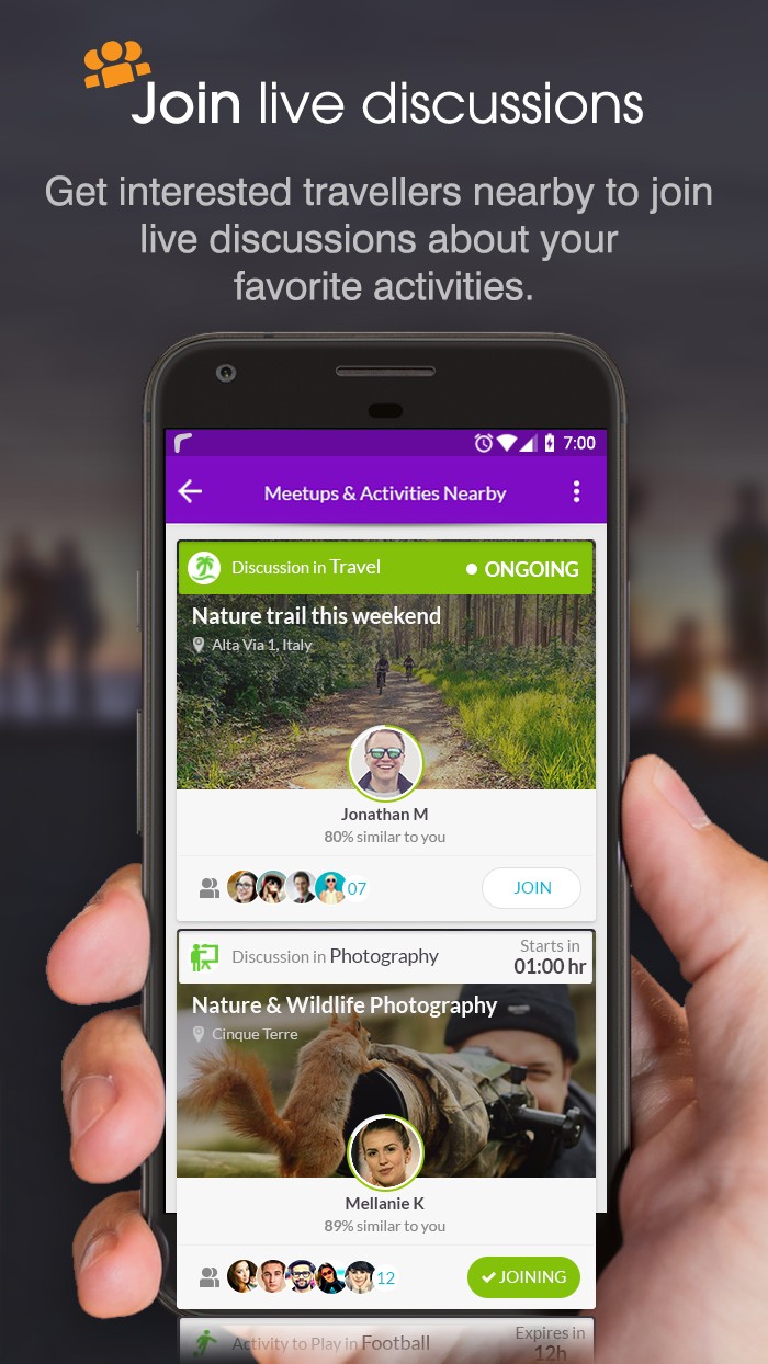 Actively engage with your like-minded community by sharing stories or asking recommendations and join live discussions with fellow like-minded travellers.