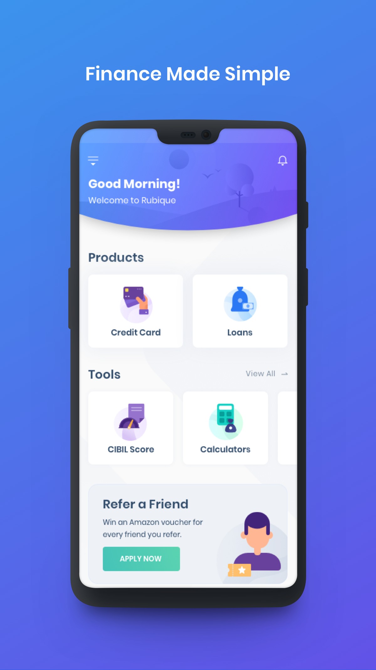 Rubique’s ingenious app, brings the best of financial products and services, from India’s top banks at your fingertips. Through the Rubique app, we aim to make your financial journey simple, paperless & effortless in achieving your dreams with our high-tech solutions. It’s quite simply the best loan app out there. Experience it for yourself.