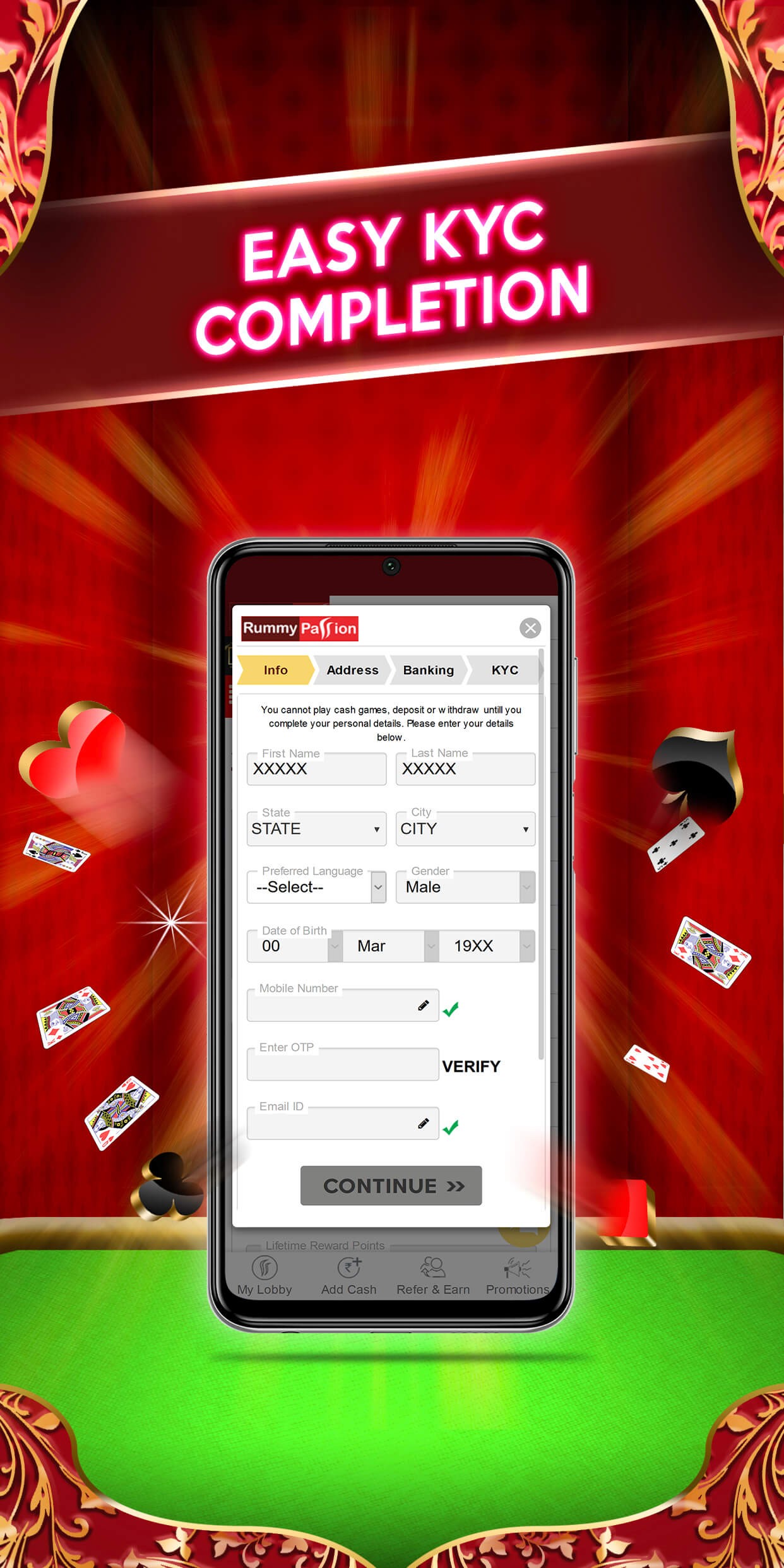 Welcome to the World of Rummy Passion, India's Most Loved Rummy App. Loaded with excellent features, multiple offers and game variants, and a player base of 50 Lakh+, the app stands apart from the rest and gives players much-needed amusement. Download the app today and get up to Rs 10,000 Match Bonus in the first week of deposit. Play cash rummy games for real money in India! Keeping players’ interest at the forefront, Rummy Passion is undoubtedly an amazing app to have on your Smartphone. What’s more? Choose any table of your choice and start competing against online players from across India. Put your skills to use and see success kissing your feet.