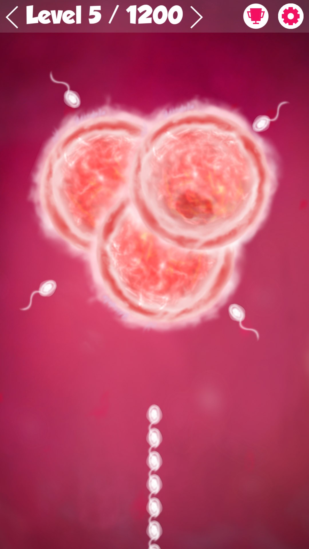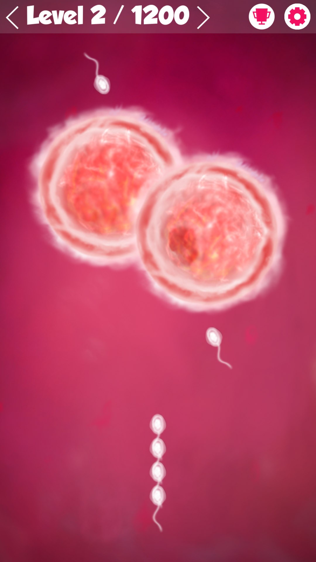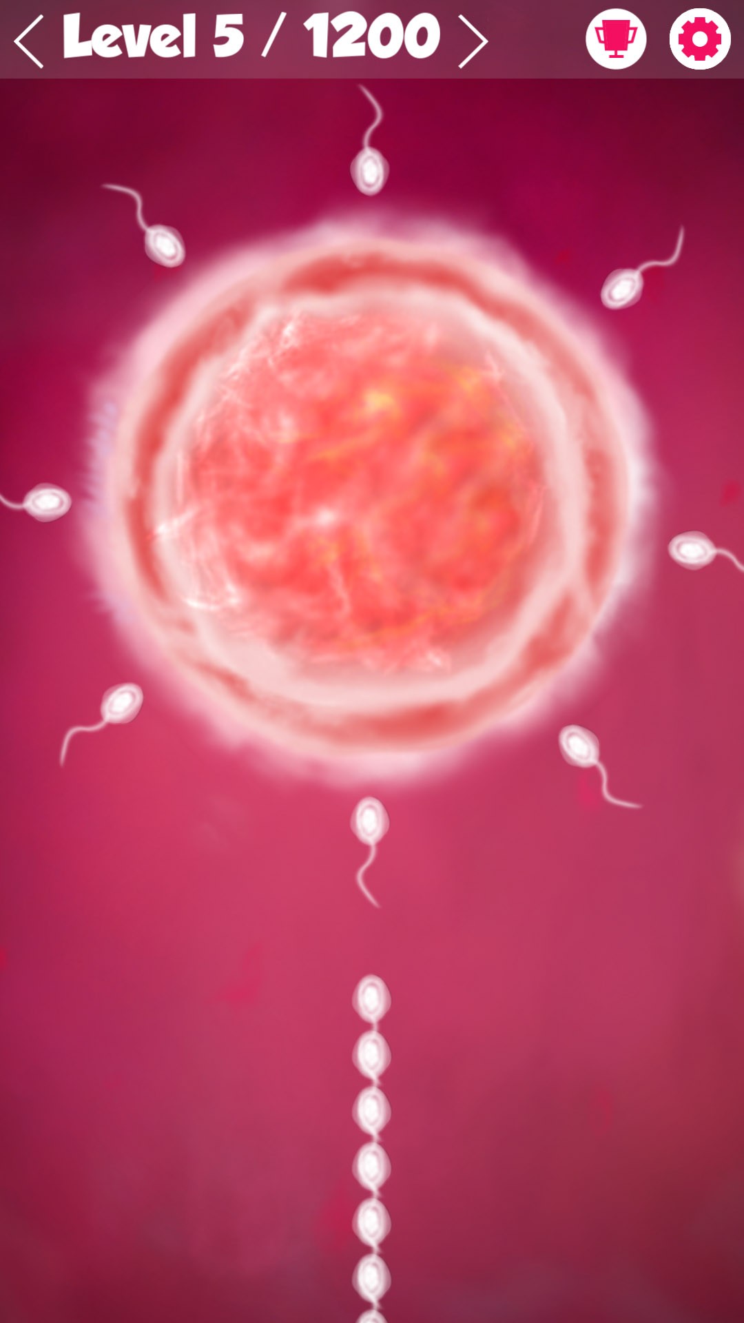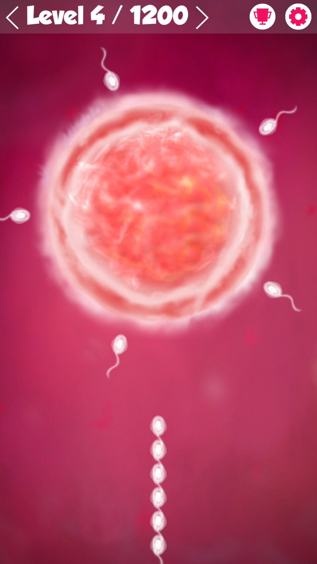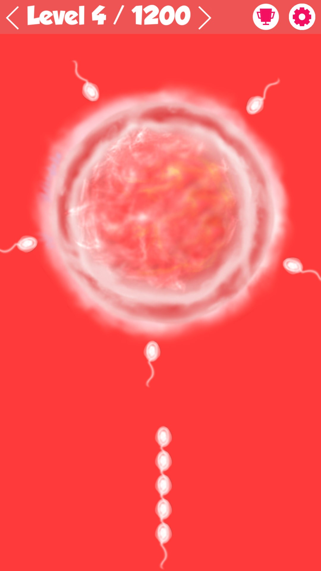 Tap on the screen to shoot the sperm from sequence to right place over the ovum and don't crash with another one.